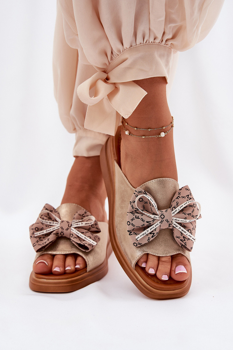 Klapki Damskie Na Koturnie Z Kokardą Czarne Moonzella