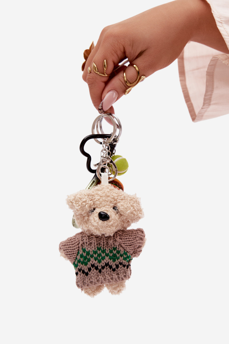 Keychain Pendant for Bag Keys Teddy Bear in Sweater Rocket with Ball Hamburger Green