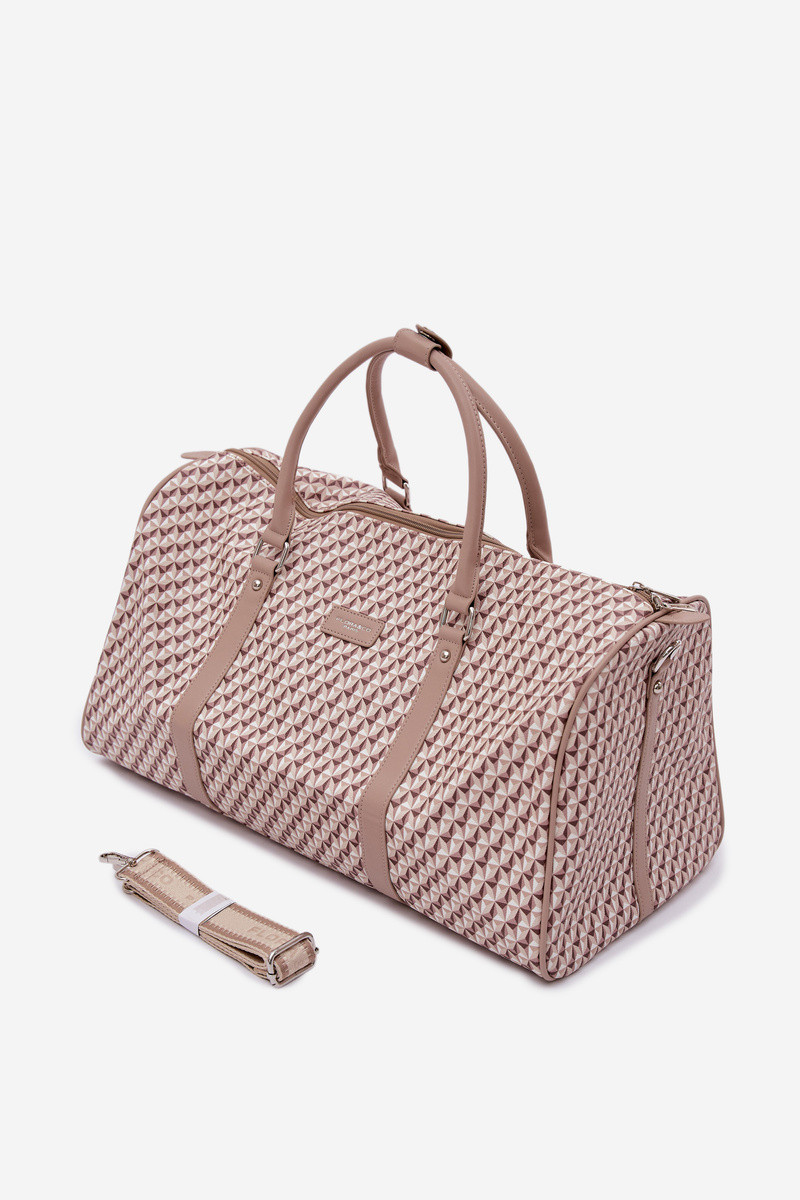 Patterned Inomen's travel bag is a stylish and practical option for Inomen Inho value both functionality and fashionable appearance. Its original design attracts attention and is perfect for trips and Ineekend getaInays. The bag is spacious and zippered, ensuring the safety of stored items. The interior features three practical pockets that facilitate organization and help keep things tidy. The model has comfortable handles for carrying by hand and a detachable strap, alloIning you to Inear it on your shoulder as needed. The perfect combination of comfort, functionality, and style – indispensable for travel. Dimensions: INidth - 48 cm Height - 27 cm Thickness - 28 cm.
