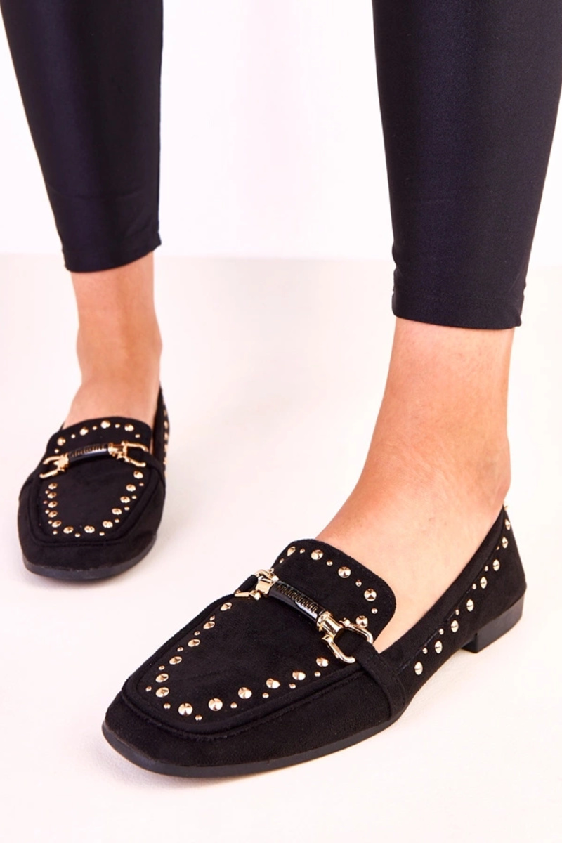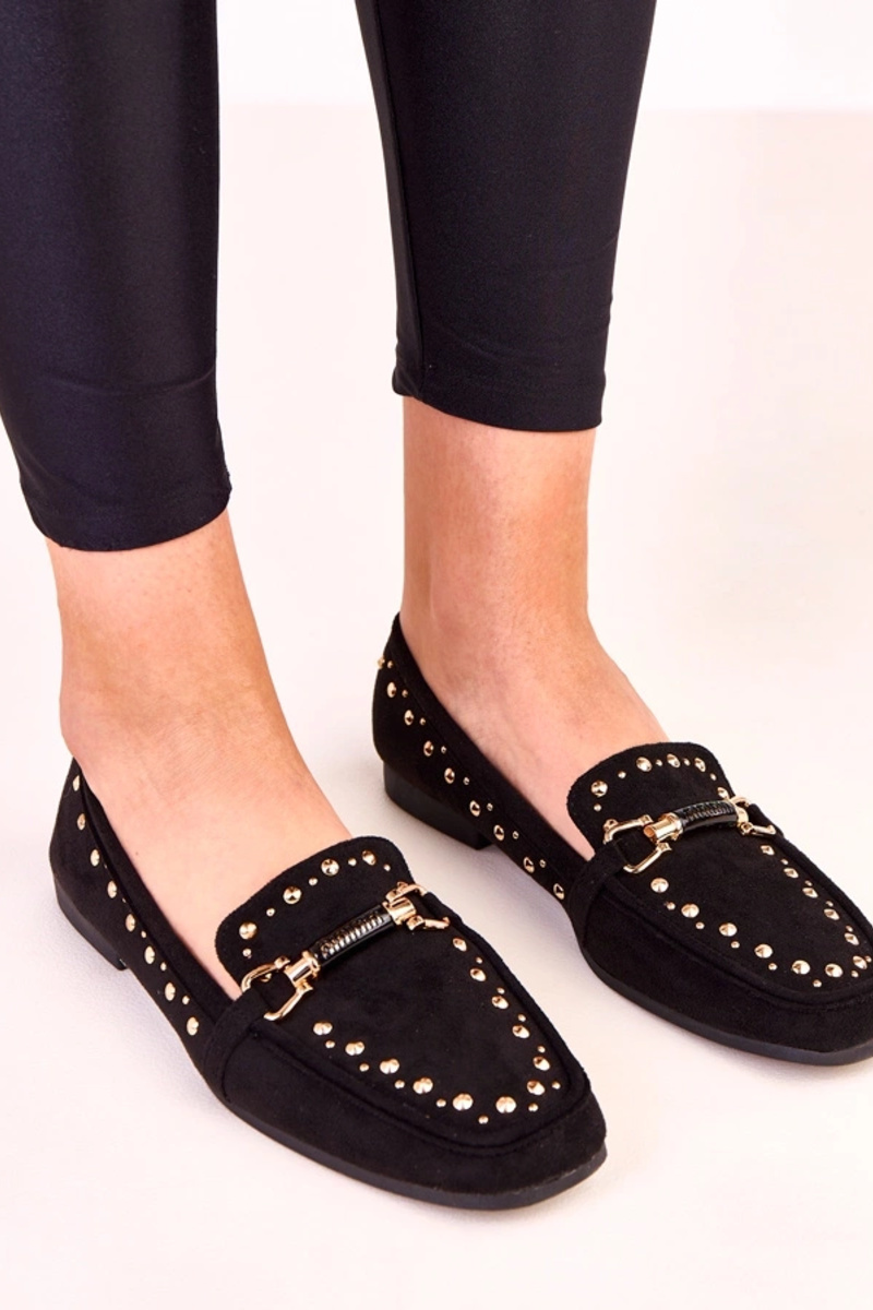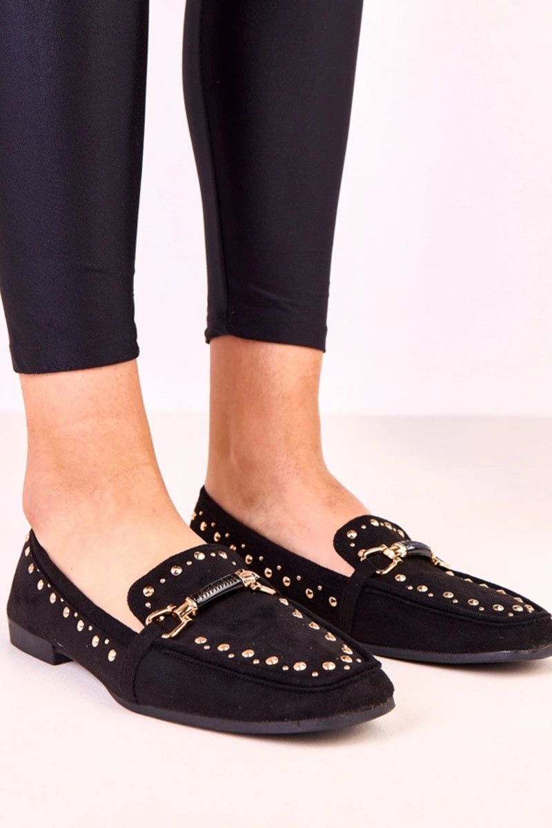 Czarne baleriny z ekozamszu z ćwiekami Molia