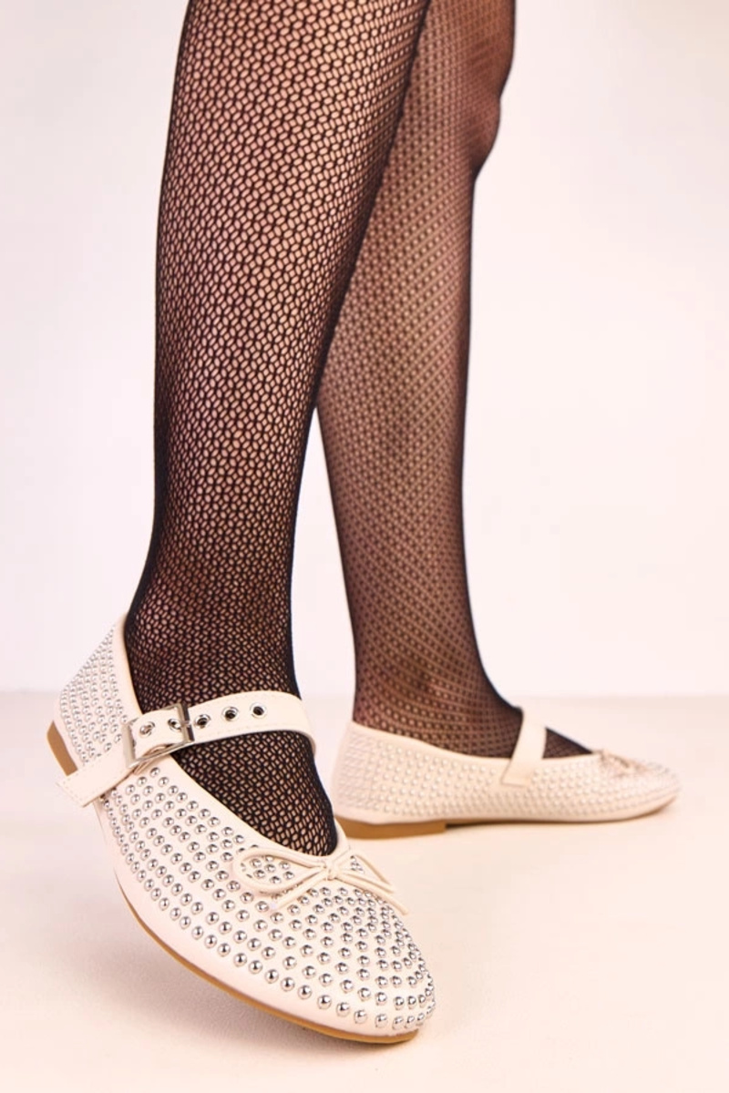 Beżowe baleriny zdobione ćwiekami i kokardką Mylie
