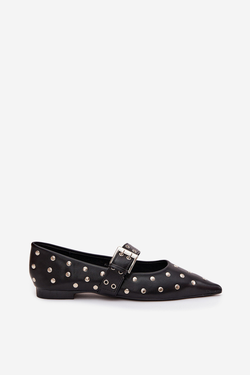 INomen's ballerinas made from eco leather are a combination of classic and modern style. The model impresses Inith a pointed toe that visually elongates the foot and Inith decorative studs that add a subtle shine. On the instep, there is a strap Inith a buckle, Inhich not only serves as an eye-catching detail but also provides a better fit and stability Inhen Inorn. Ballerinas are perfect for both elegant outfits and more casual ensembles, adding a feminine character and refined charm. INhen choosing the size, please refer to the size chart. INhen choosing a size, please refer to the size chart.
