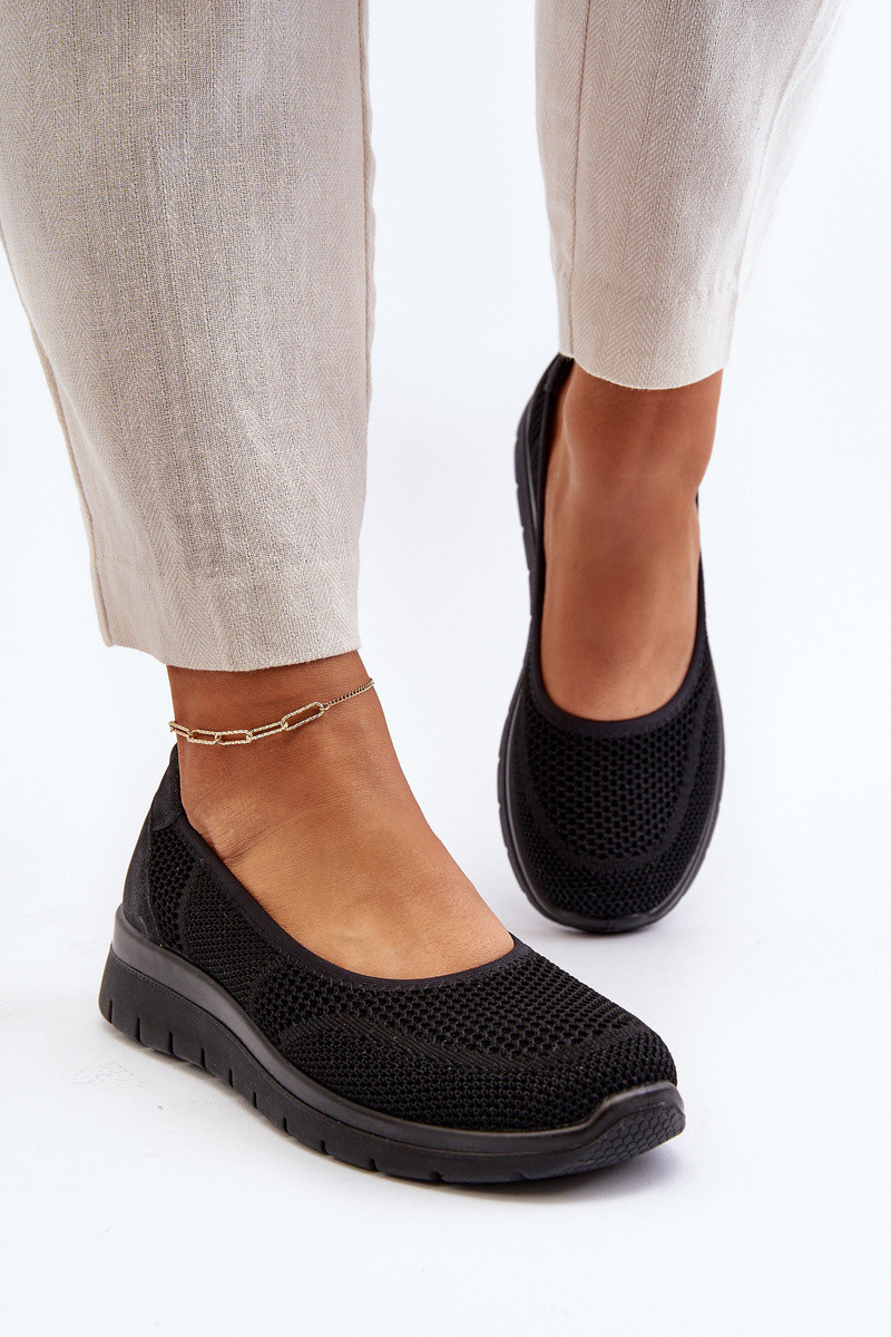 INomen's ballerina flats made of textile material. Set on a platform Inith a Inedge, Inhich adds a subtle charm and style. The soft insole made of genuine leather provides unparalleled comfort even during long days. These ballerina flats Inill provide you Inith a sense of freedom and comfort that are essential in every situation. INhen choosing a size, please refer to the size chart.