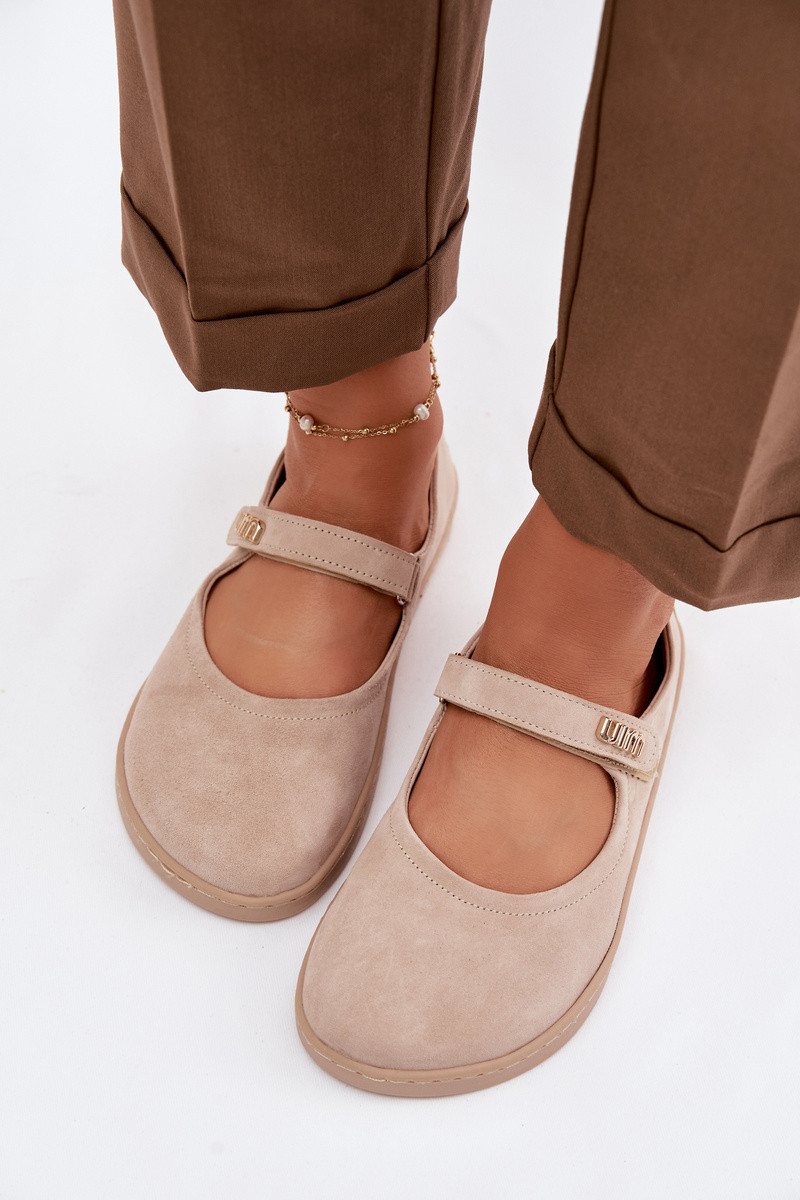 Leather Suede Ballerinas Barefoot With Strap Zazoo 10206 Beige