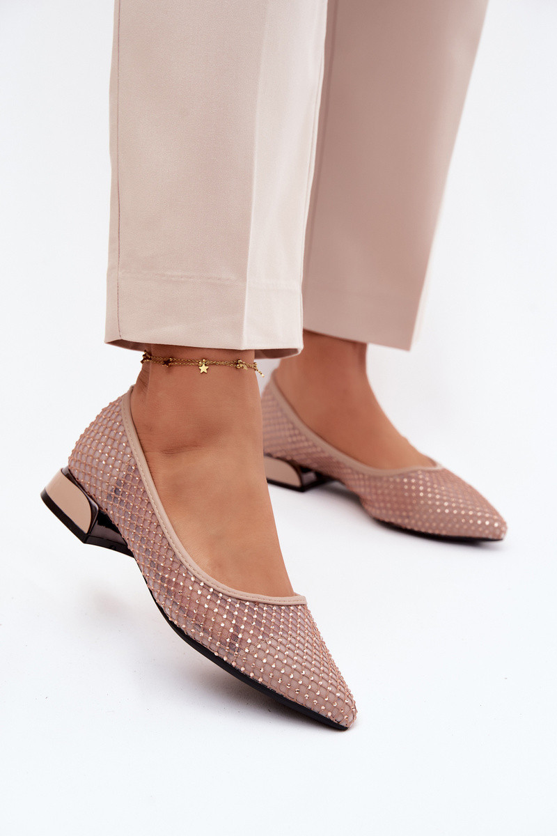 Low Heel Mesh Ballerinas with Embellishment Vinceza 62294 Beige