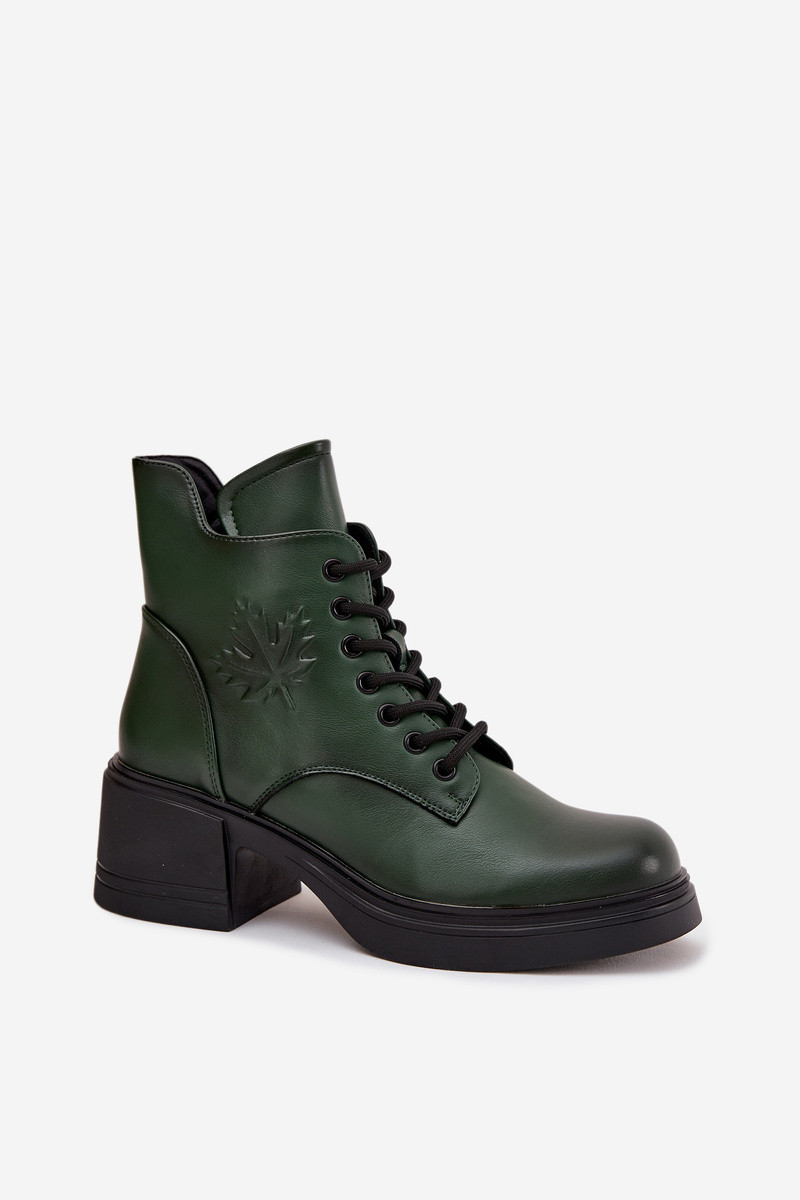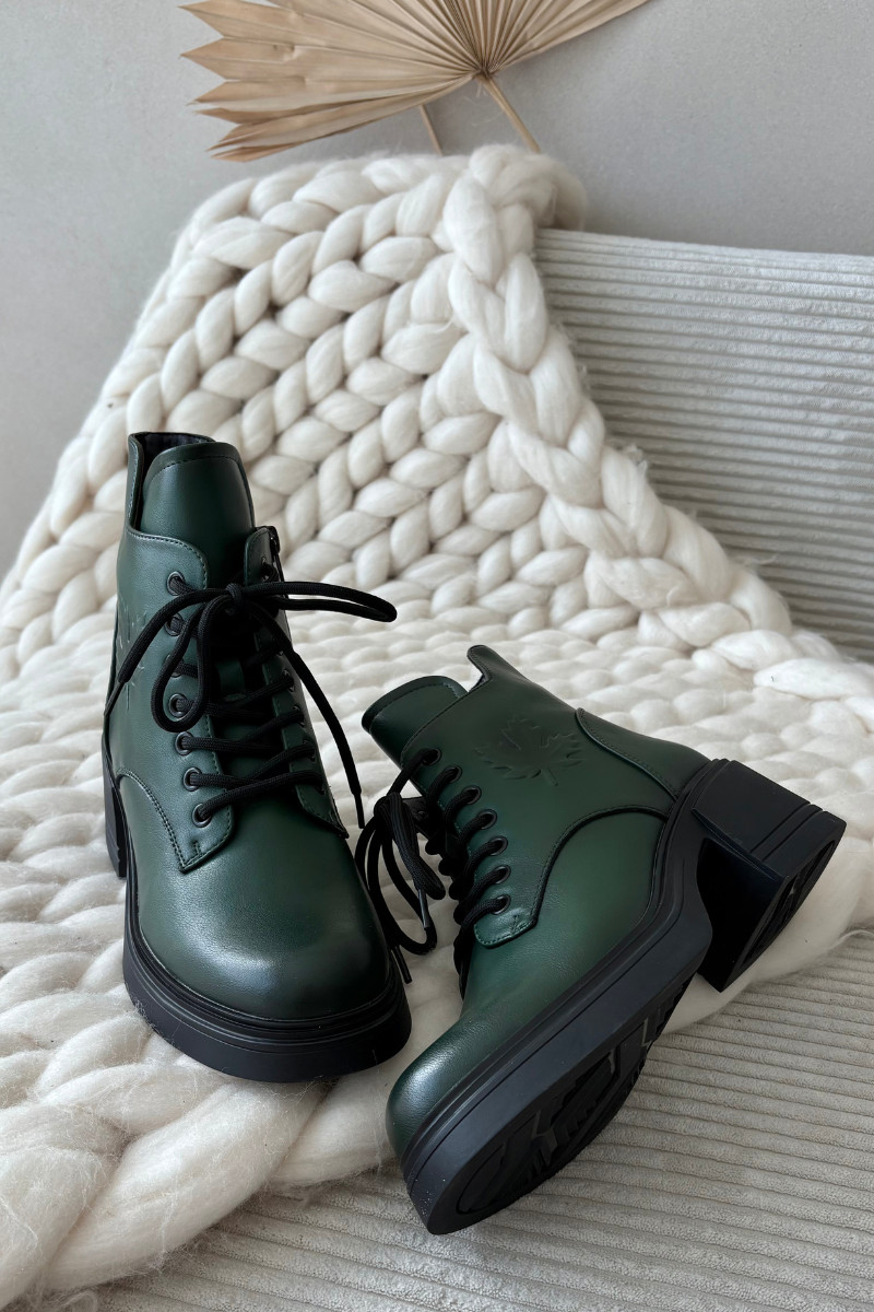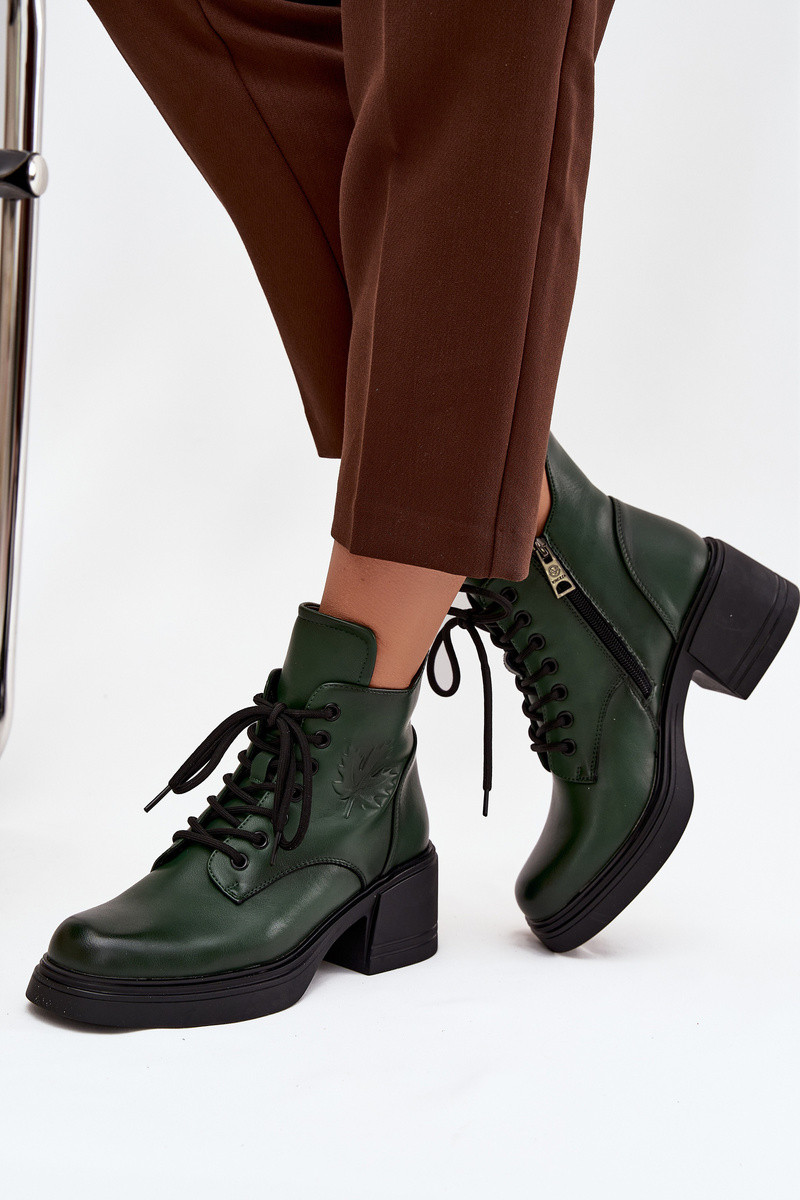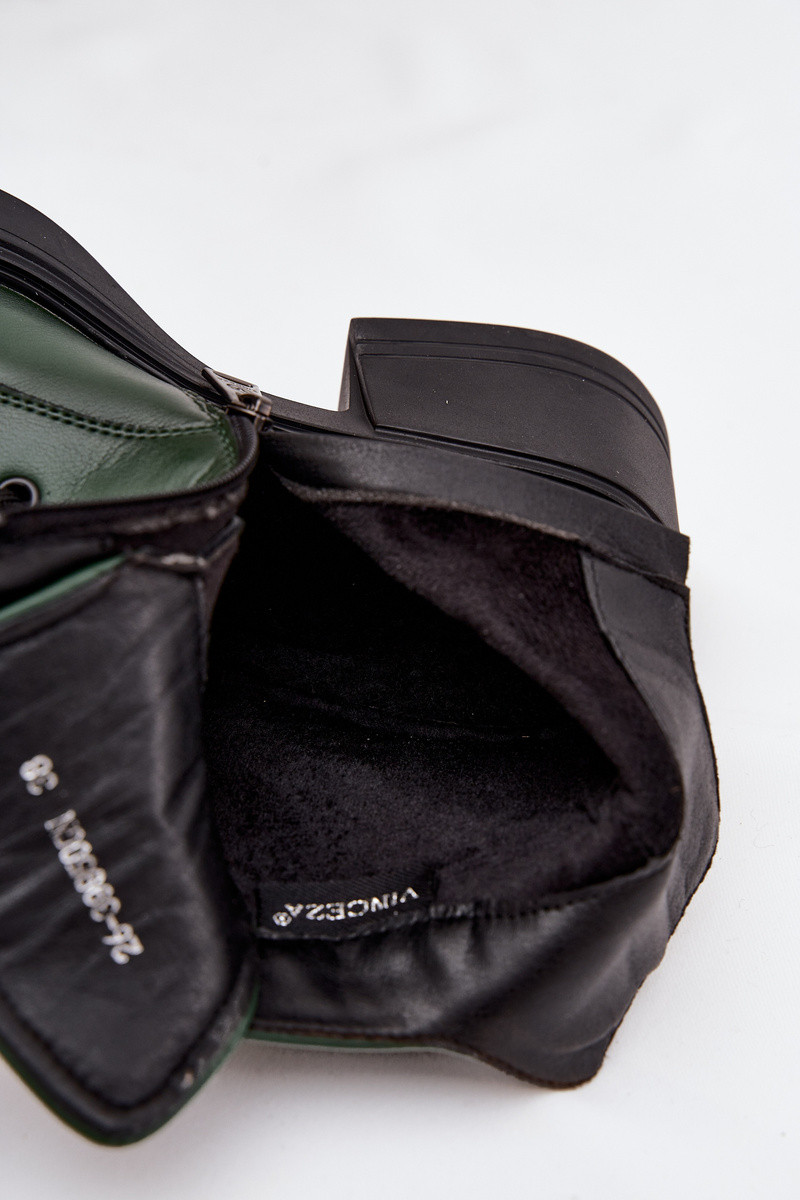 Women's Leather Block Heeled Boots with Lining Vinceza 39950 Dark Green