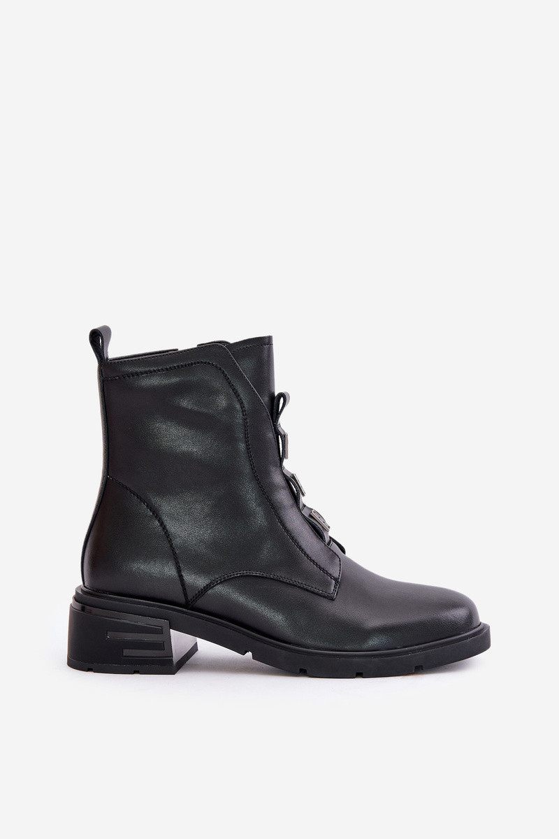 Leather Ankle Boots With Zipper Insulated Black Olidrila