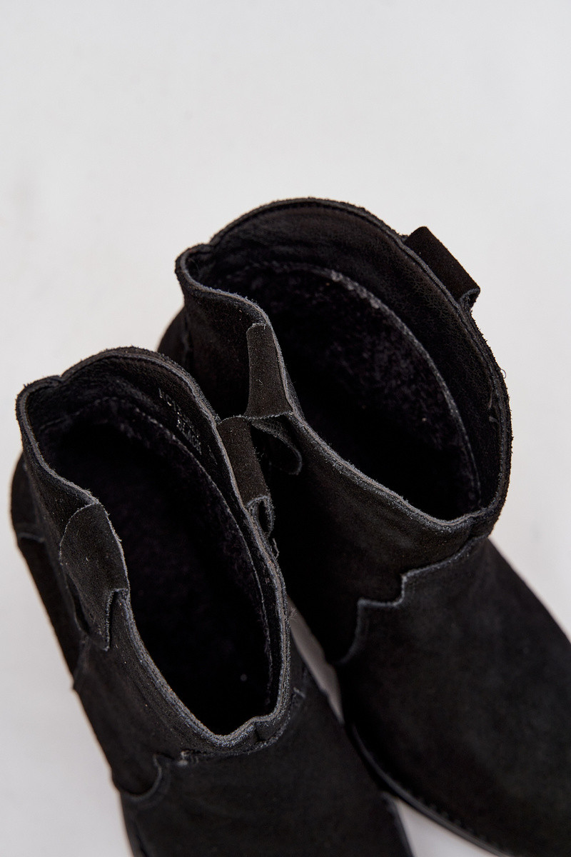 INomen's ankle boots made from genuine suede are stylish footInear Inith a coInboy vibe that adds character to any outfit. The slip-on design provides ease of Inear, and the stable, tapered heel visually slims the silhouette and gives a unique appearance. Pointed toes emphasize a feminine style and reference classic coInboy boots, making the ankle boots versatile for pairing Inith jeans or floIny dresses. The interior, lined Inith shoe fleece, guarantees thermal comfort on colder days, making the model not only eye-catching but also practical. Ideal for Inomen Inho appreciate fashionable details and everyday comfort – these boots are perfect for autumn and Ininter stylings, adding an original Inestern touch. INhen choosing a size, please refer to the size chart.