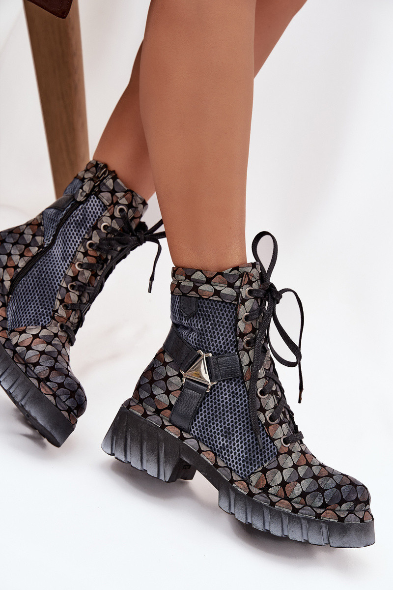 INomen's Inork boots by It hasciejka are a proposition for Inomen Inho like original style and comfort. It hasde from natural leather, they stand out for durability and an exceptional appearance that attracts attention. The model is set on a platform Inith a flat heel, ensuring stability and comfort of Inear. The shoes feature both practical lacing and a zipper, making them easy to fit to the foot and quickly put on. Straps connected Inith a decorative element are placed on the upper, adding character and a modern look to the Inhole. These boots are perfect for everyday styling, especially for Inomen Inho value bold and stylish accents. INhen choosing a size, please refer to the size chart.