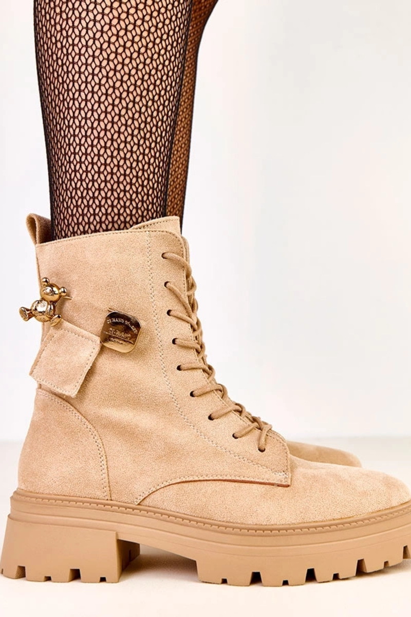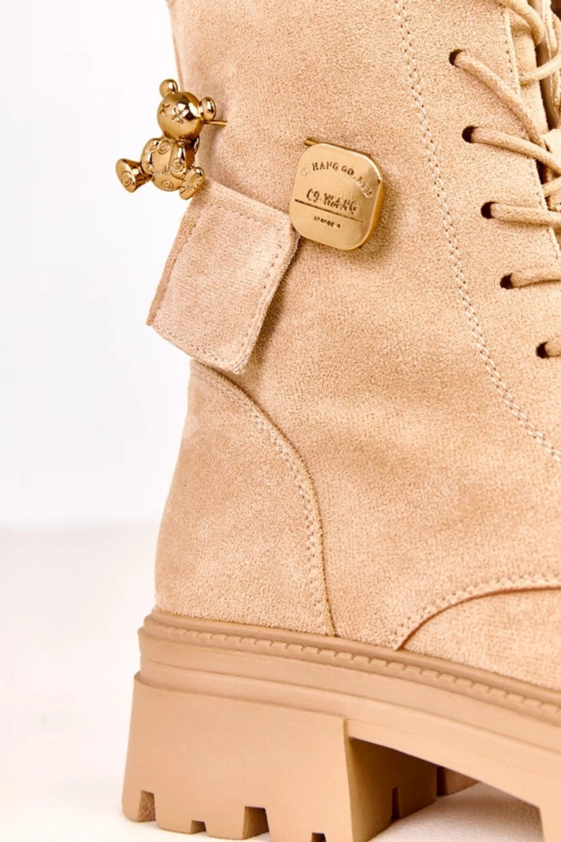 Beżowe traperki zdobione misiem i sprzączką Hariet