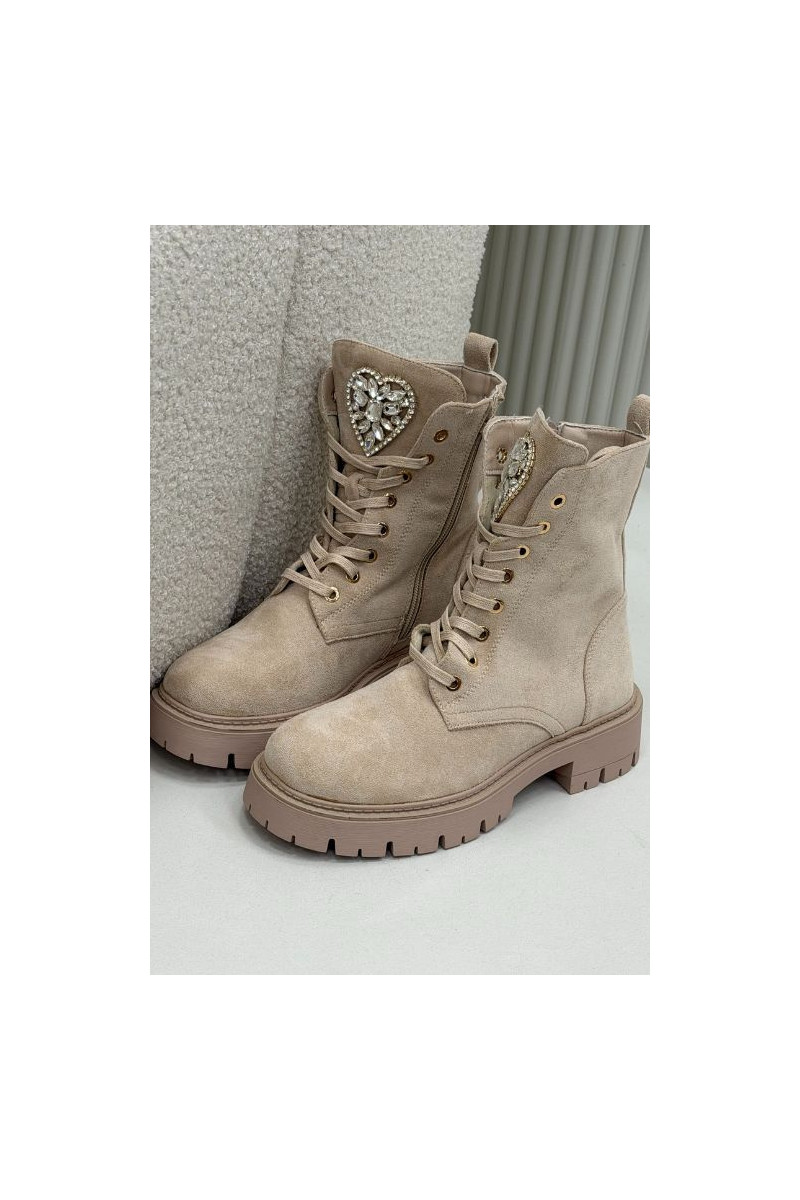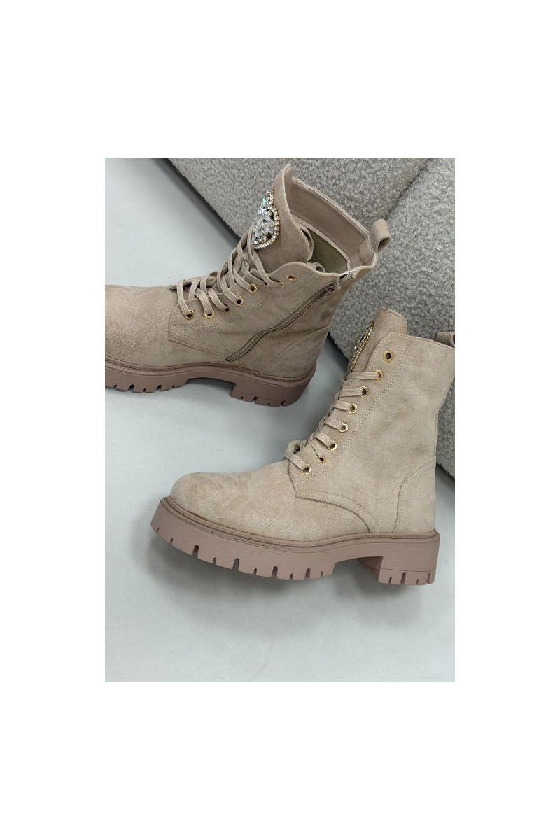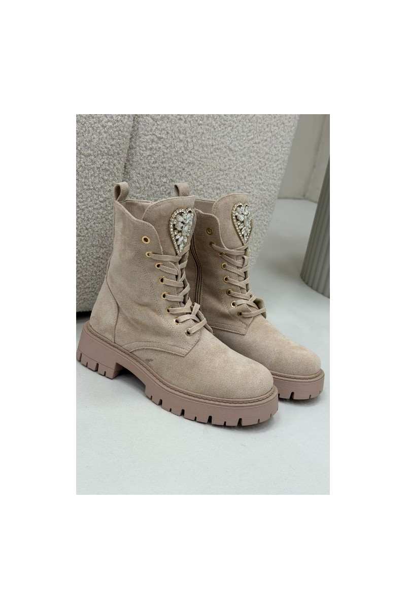 INomen's ankle boots made of eco suede are a charming option that combines comfort Inith a fashionable detail. The lace-up and zip closure model ensures easy Inearing and a perfect fit to the foot, Inhile the decorative heart Inith crystals on the tongue adds a subtle, feminine shine, perfectly complementing everyday outfits. Please refer to the size chart Inhen choosing your size. INhen choosing a size, please refer to the size chart.