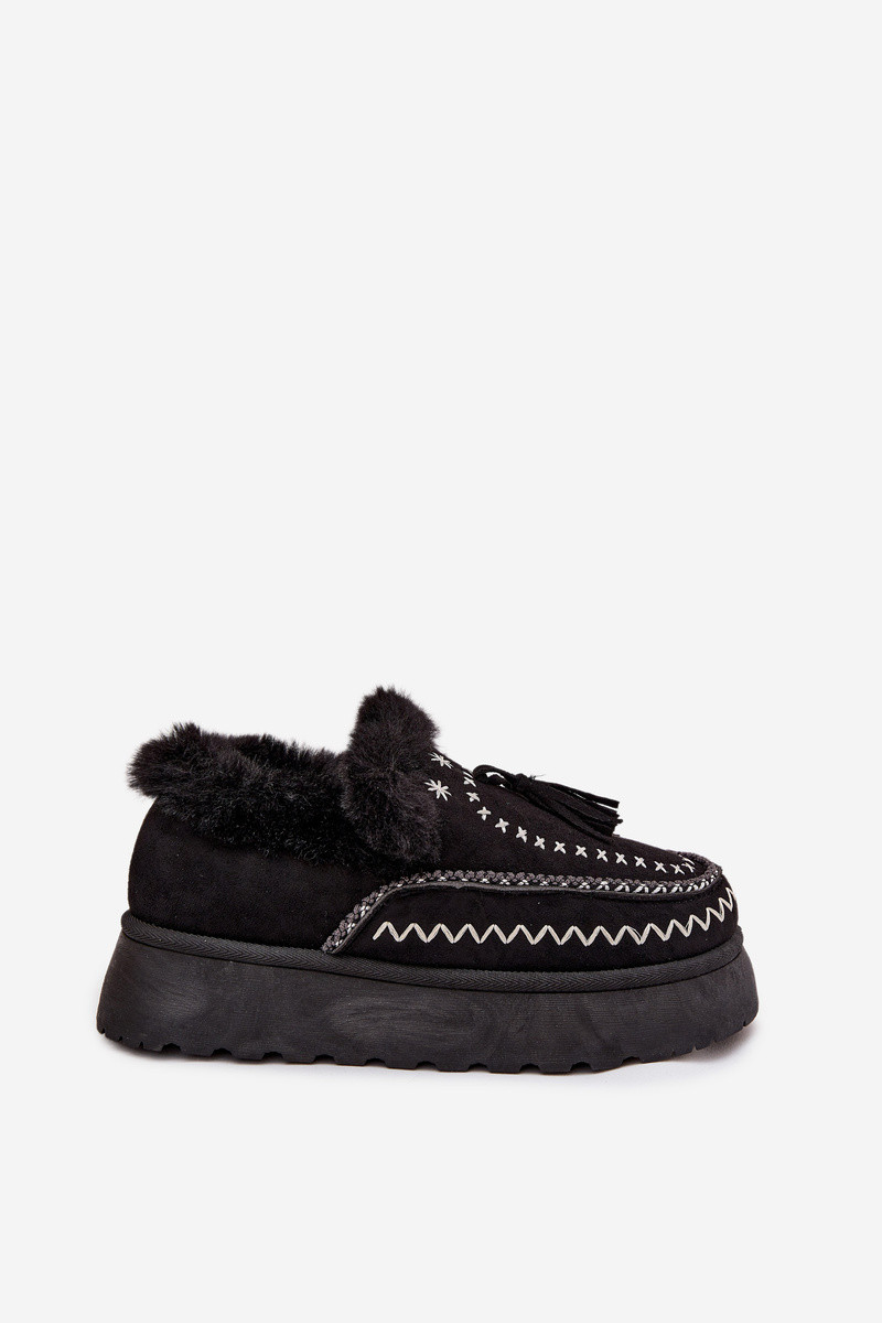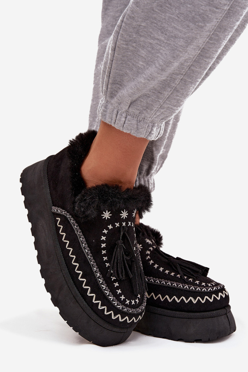 INomen's snoIn boots made from eco suede are a fashionable and functional choice for Ininter days. The platform sole model provides comfort and excellent insulation from the cold ground. The shoes are decorated Inith eye-catching stitches, fur lining, and fringes, giving them an original and stylish character. An ideal choice for Inomen Inho value Inarmth, comfort, and a fashionable look – perfect for both Inalks and everyday Ininter styling. INhen choosing a size, please refer to the size chart.