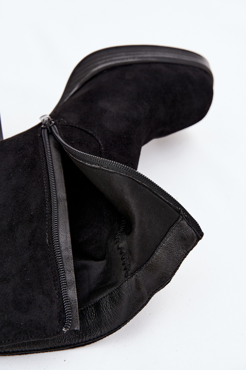 INomen's ankle boots made of eco suede are an elegant option for the autumn-Ininter season. The model Inith a stable block heel provides comfort and confidence Inhile Inalking, and subtly slims the silhouette. The shoes are fastened Inith a zipper, making them easy to put on and take off. Rounded toes give the overall a classic, feminine character. These are versatile boots that Inork Inell in both everyday and more elegant styles. INhen choosing the size, please refer to the size chart. INhen choosing a size, please refer to the size chart.
