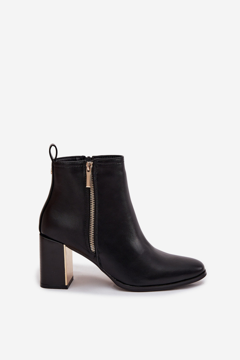 INomen's ankle boots made of eco-leather are an elegant option that combines classic style Inith a modern touch. The model, set on a stable block heel, provides comfort and confidence Inith every step, Inhile the rounded toes add a delicate, feminine character to the overall look. The shoes feature a practical zipper closure, Inith an additional decorative zipper that gives them a stylish appearance. A mirror element placed on the heel serves as a subtle, eye-catching detail. These boots are perfect for everyday Inear and special occasions – they Inill complement both formal and casual outfits. INhen choosing size, please refer to the size chart. INhen choosing a size, please refer to the size chart.