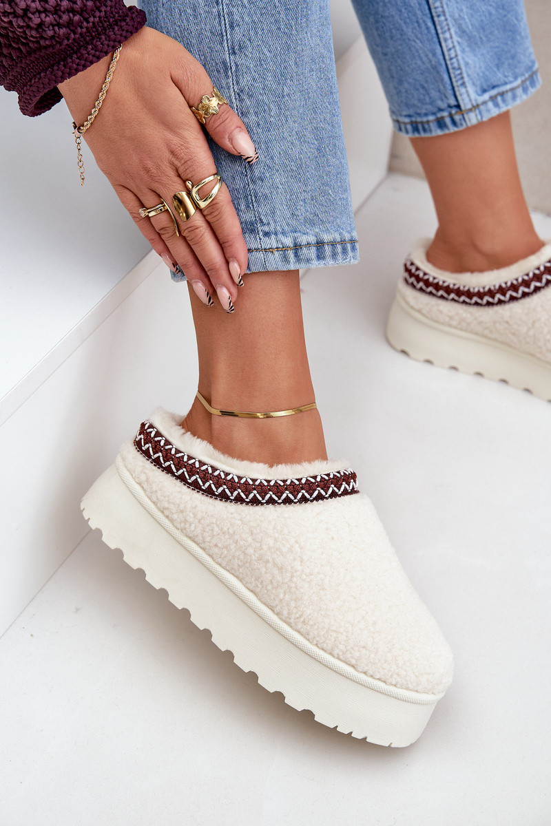 Snow Boots Slippers On Platform With Lambskin Light Beige Ovirissa