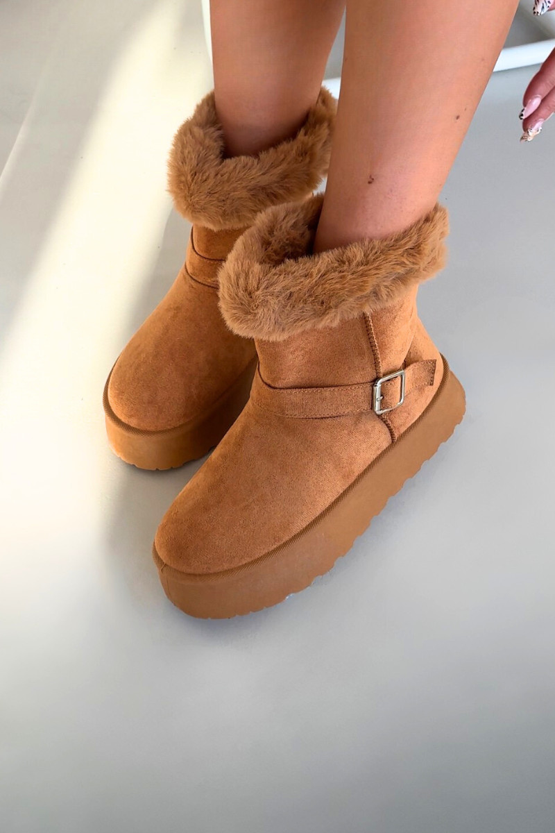 Women's Snow Boots On Platform With Buckle And Fur Camel Jesella