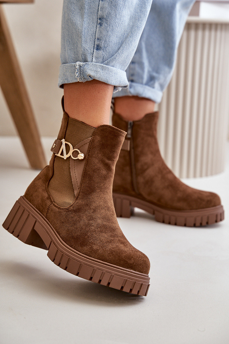Warm Women's Boots with Golden Detail Eco Suede Brown Bervena