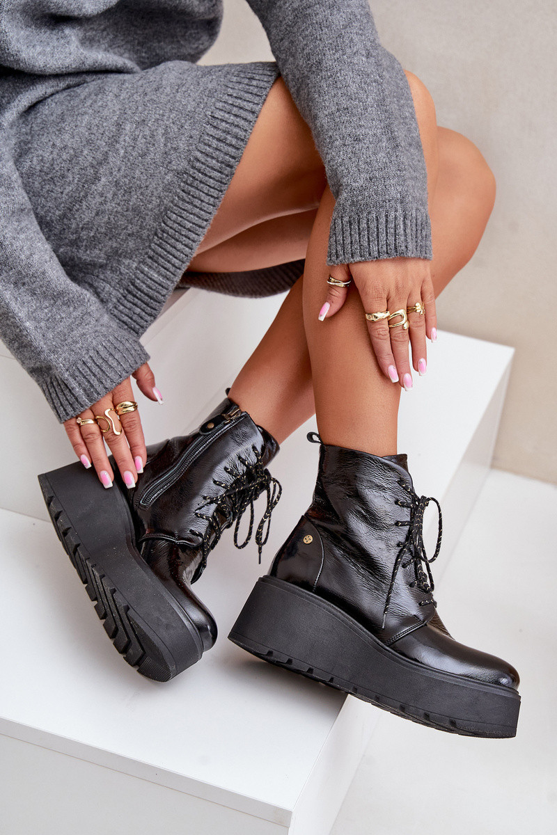 Leather Patent Ankle Boots On Platform And Wedge Maciejka 06762-01 Black