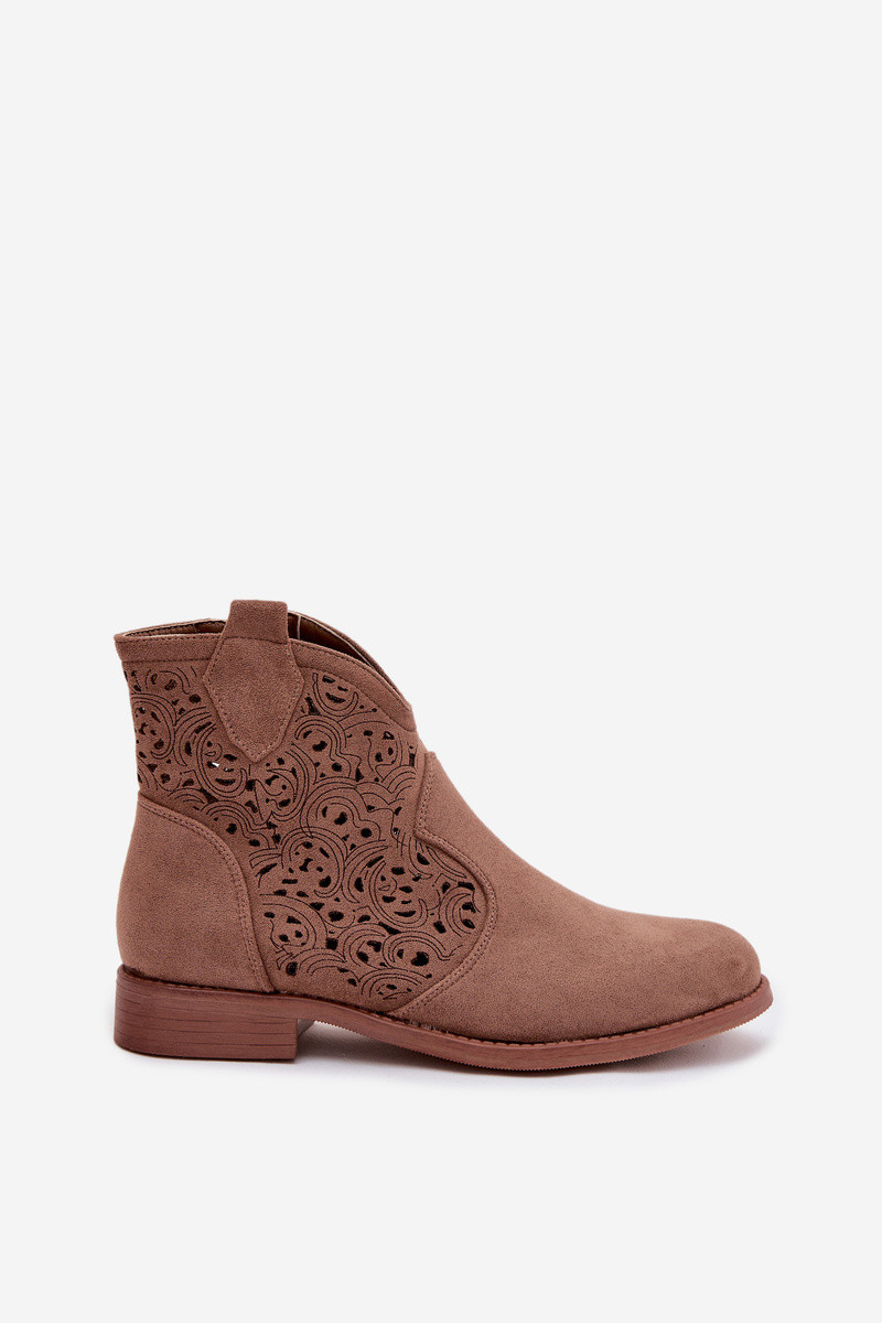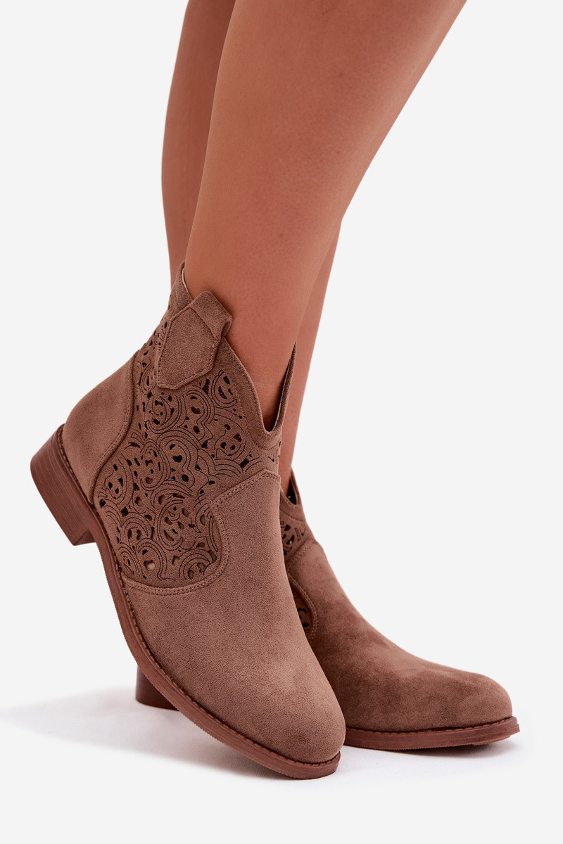 Women's Perforated Ankle Boots With Flat Heel S.Barski HY61-8026 Brown