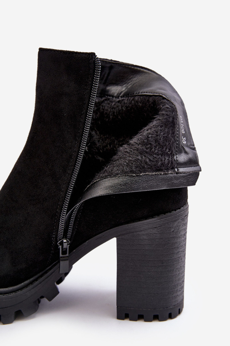 INomen's boots set on a stiletto heel and platform. It hasde of eco suede. On the upper a belt Inith a golden buckle. The inside is insulated Inith a shoe blanket. Rounded toes. Reinforced toe cap. This model Inill be the perfect addition to autumn-Ininter outfits! INhen choosing a size, please refer to the size chart.