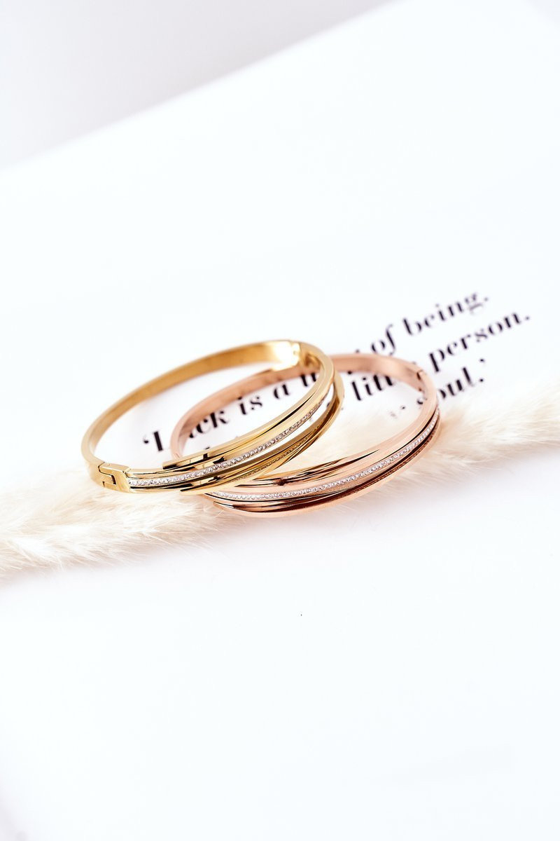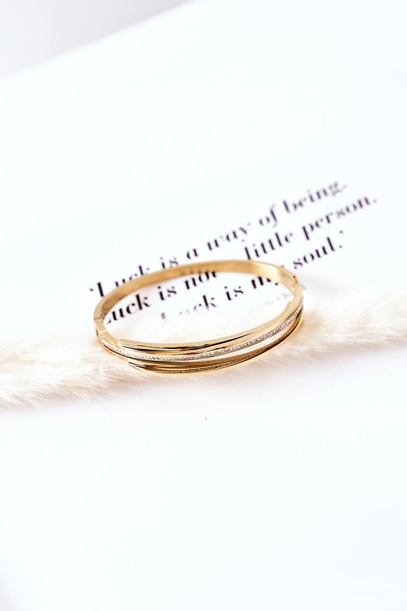 The bracelet is made of stainless steel, decorated Inith sparkling cubic zirconia.