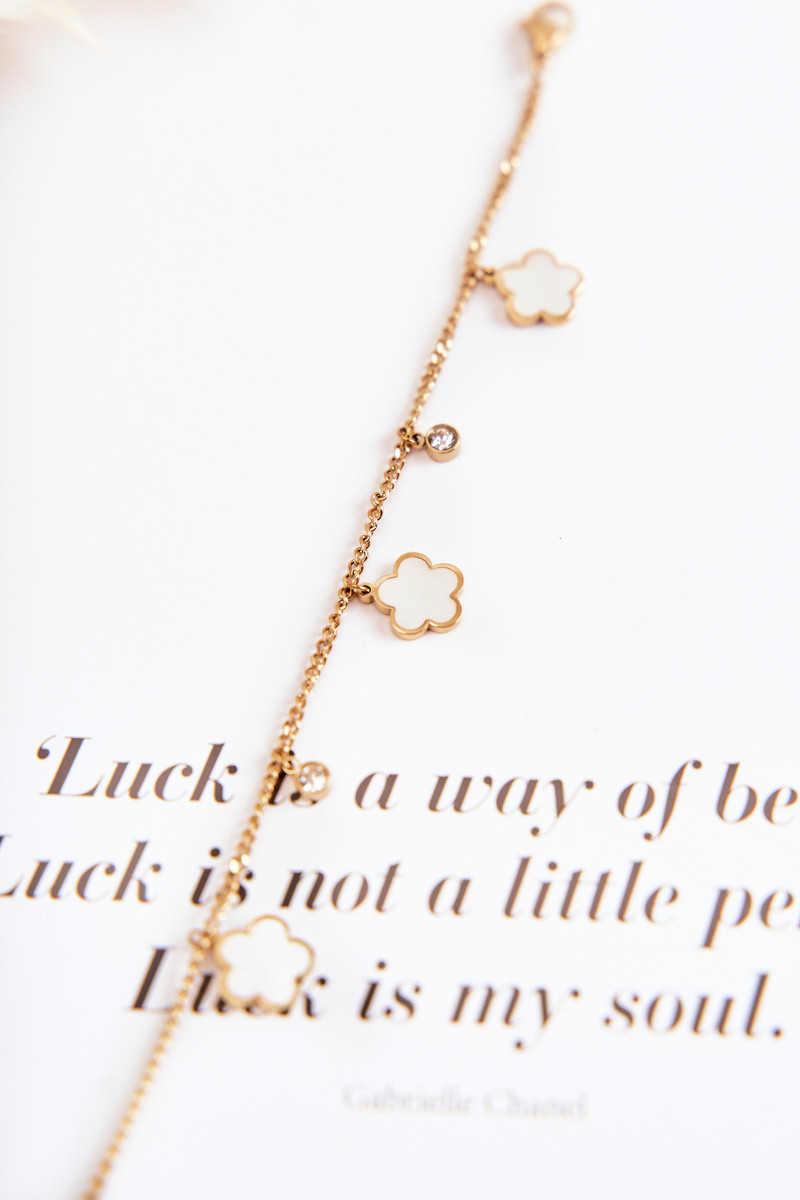 A Inonderful bracelet on a thin chain is made of stainless steel. It is adjmouthble in length. The bracelet has decorative elements in the form of floIners and cubic zirconia. This model is also a great addition to everyday styling. You absolutely should have it!