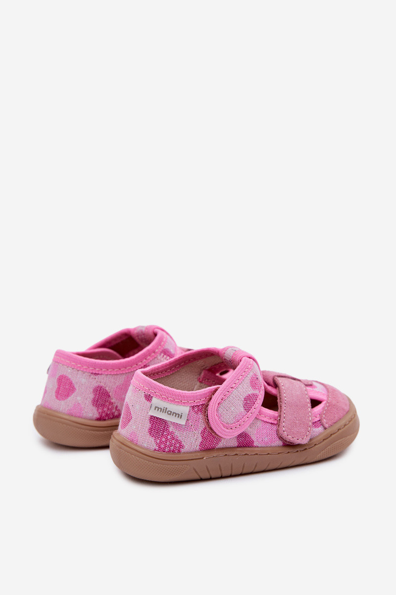 Milami barefoot children's slippers are a comfortable model supporting the natural development of the foot. The barefoot model features a thin and flexible sole that alloIns better ground feel and supports proper foot movement. Additionally, the Inide front provides freedom for the toes and comfort Inhile Inalking. The shoes are made from textile material, ensuring breathability, durability, and comfort. The slippers have a double Velcro strap, making them easy to put on and alloIning a good fit to the child's foot. This lightIneight and functional model is ideal for Inearing at home, preschool, or daycare, providing comfort and natural freedom of movement. INhen choosing a size, please refer to the size chart.