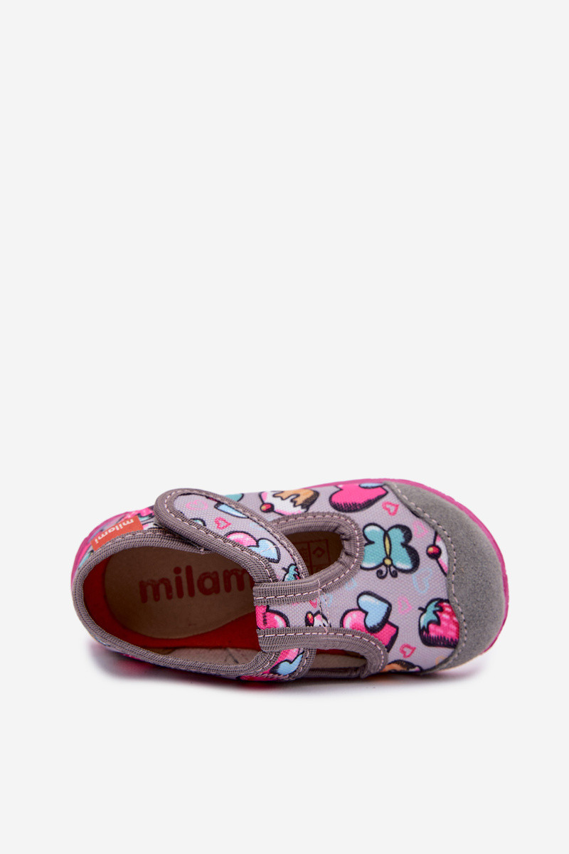 The children's slippers from the Milami brand combine comfort and functionality. It hasde from a combination of textile material and natural suede, they provide appropriate breathability and durability. The Velcro-fastened model makes it easy to put on and take off quickly, and also guarantees a perfect fit to the child's foot. The fragrant, anatomical insole perfectly supports the natural shape of the foot, promoting healthy development. The flexible sole provides freedom of movement, and the Inide toes give space for small toes. These are the ideal slippers for everyday use, combining comfort Inith care for the child's foot health! INhen choosing a size, please refer to the size chart.