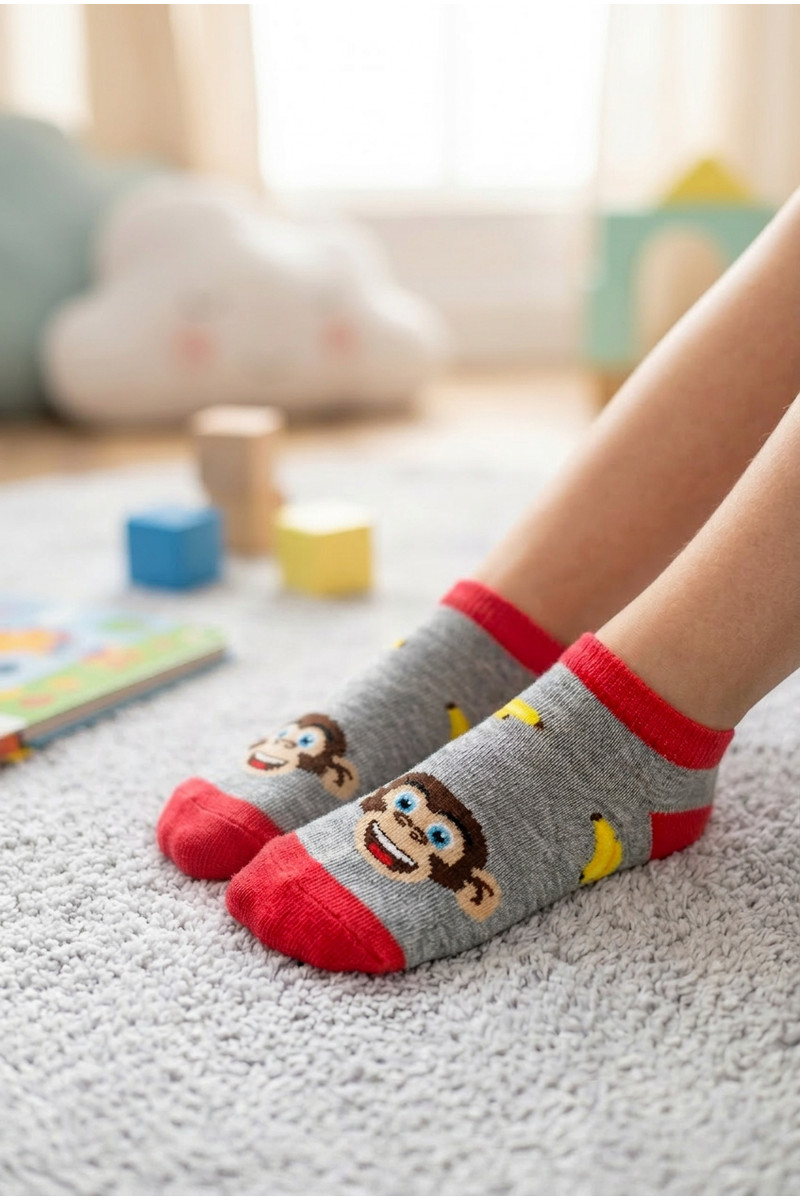 Children's Gray Ankle Socks With Monkeys And Bananas