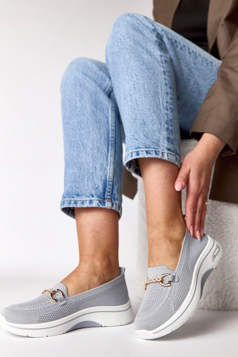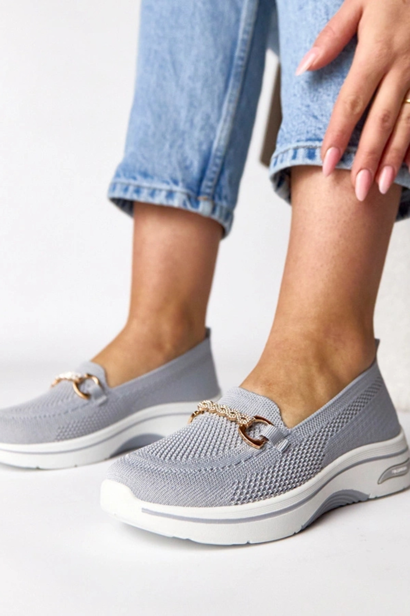 Szare wsuwane materiałowe tenisówki z cyrkoniami Gisele