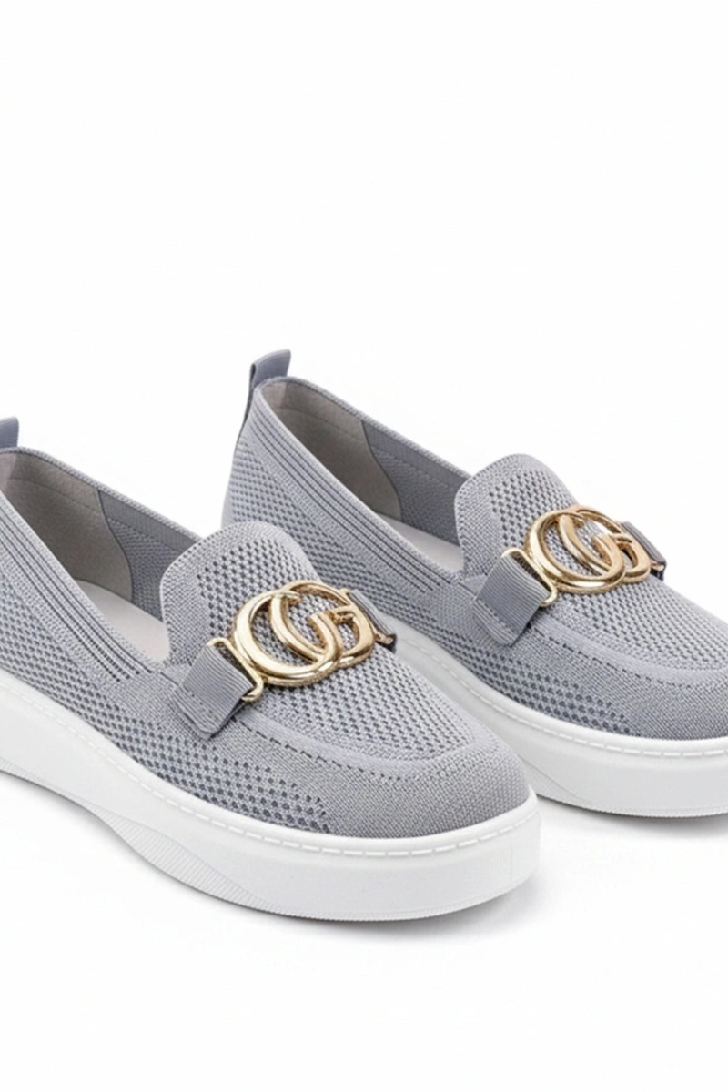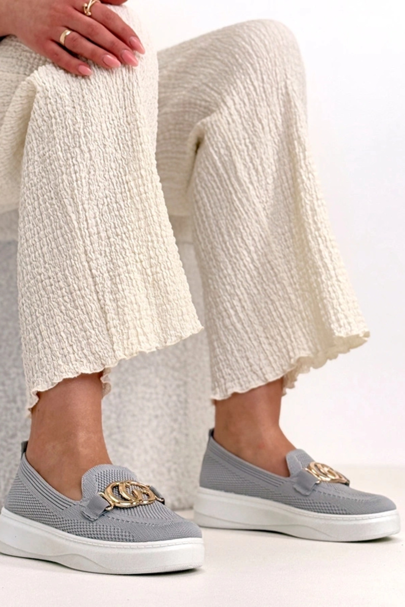 Szare Wsuwane Materiałowe Tenisówki Z Klamerką Catherine
