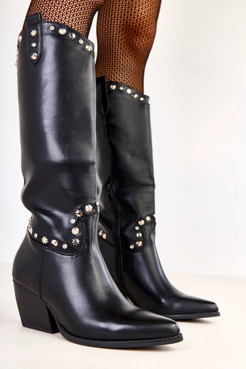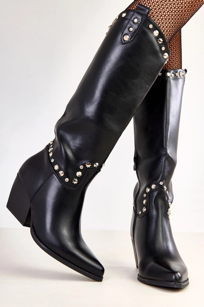 Czarne damskie kowbojki zdobione dżetami Horsey