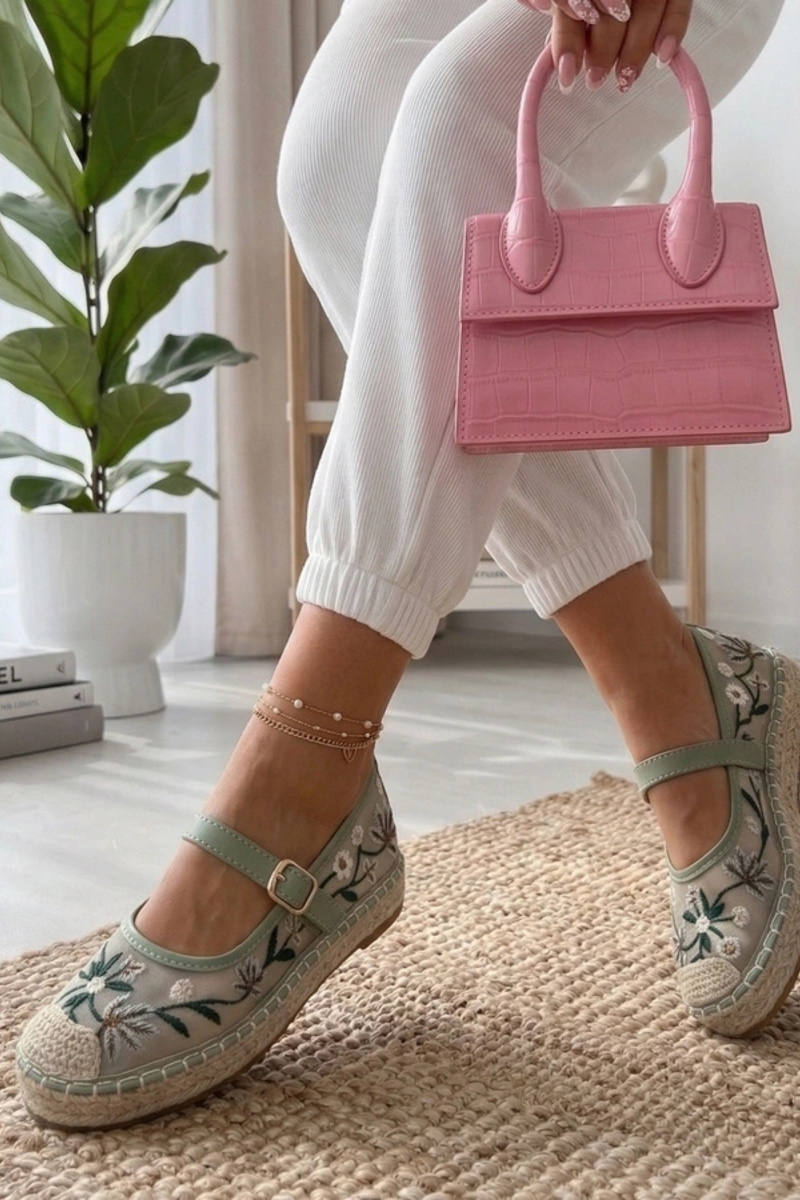 Zielone Espadryle Zdobione Haftowanymi Kwiatkami Lucille
