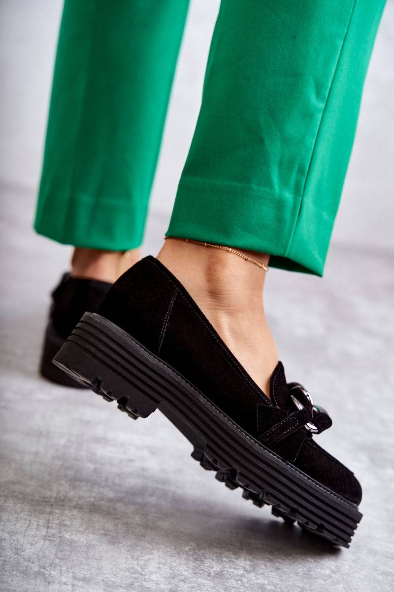 Classic shoes are made of high-quality natural suede leather. On the front there is a characteristic chain ornament with an interwoven belt made of natural suede. These shoes have a platform and a flat heel. The grooved sole will perfectly isolate from uneven ground. A great model for many styles! Comfortable and fashionable at the same time. You absolutely must have them! When choosing a size, please use the size chart.