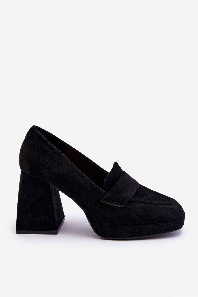 Unique, women's pumps made of eco suede. They have a stripe of the same fabric on the front. Set on a massive heel in the form of a block and a platform. You will love these wonderful pumps. A soft, eco-leather insole will ensure comfortable use. When choosing a size, please refer to the size chart.