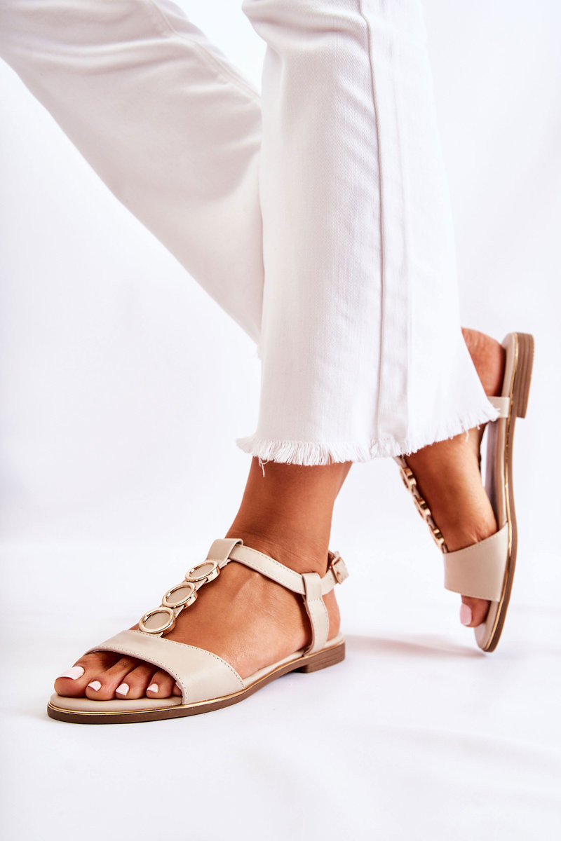 Are you looking for light and airy footInear for hot days? These sandals Inill be perfect! It hasde of eco leather. They have an ornament in the form of circles on the central strip. Fastened around the ankle Inith an adjmouthble strap Inith a buckle, Inhich Inill alloIn the shoes to be properly adjusted. The nose is open, rounded. Set on a flat heel, Inith a rubber sole, Inhich is additionally non-slip. The insole is soft, comfortable, made of eco leather. INhen choosing a size, please use the size chart.