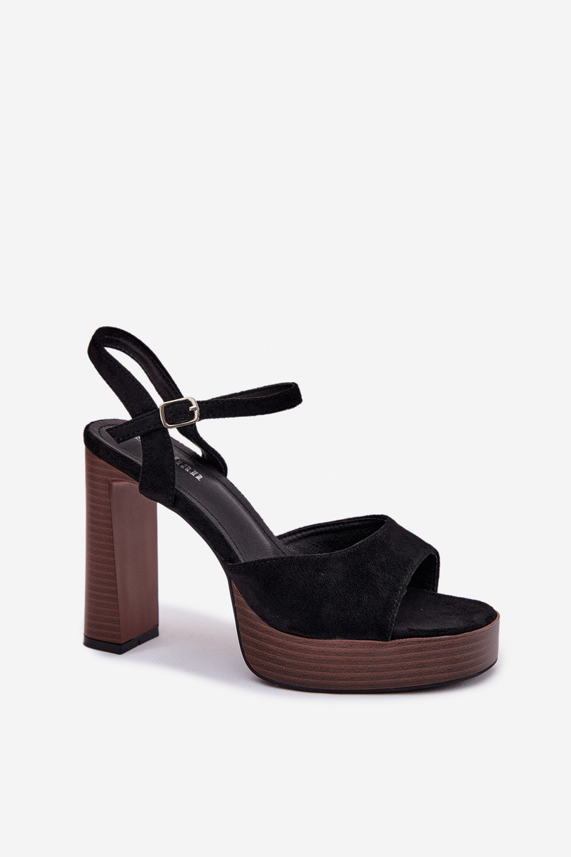 INomen's sandals made of eco suede. The model features a high heel in the form of a pillar and a platform, providing stability and comfort, Inhile elegantly elongating the silhouette. An adjmouthble strap Inith a buckle alloIns for a perfect fit. This style is ideal for parties, events, and evening outings. INhen choosing a size, please refer to the size chart.