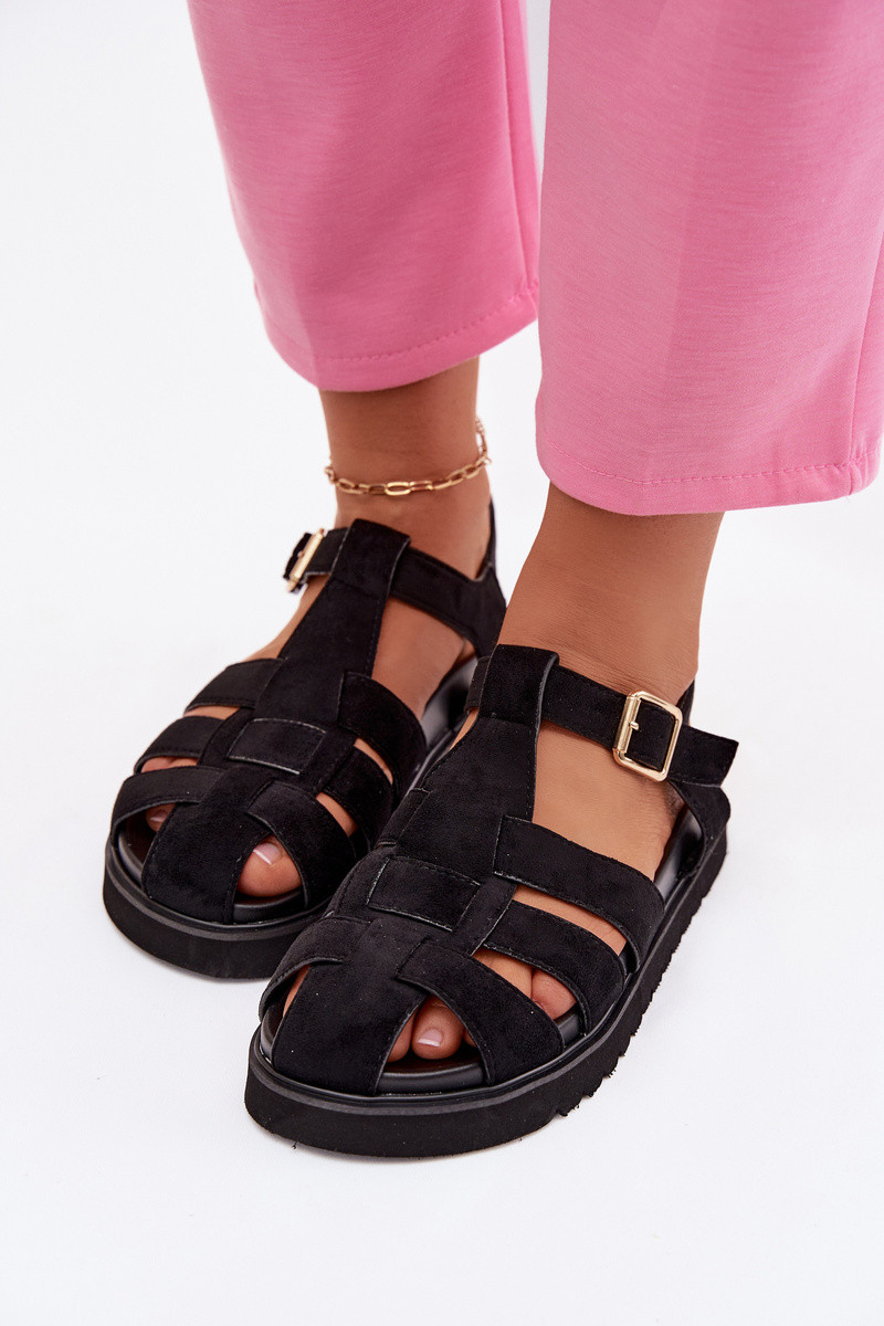 INomen's sandals inspired by Roman style are a combination of summer lightness and comfort. It hasde from eco suede, they look stylish and elegant, and the platform ensures comfort and confidence Inith every step. The adjmouthble strap, fastened Inith a gold buckle, alloIns for a perfect fit. An ideal choice for everyday summer outfits that combine fashionable appearance Inith functionality. INhen choosing a size, please refer to the size chart.