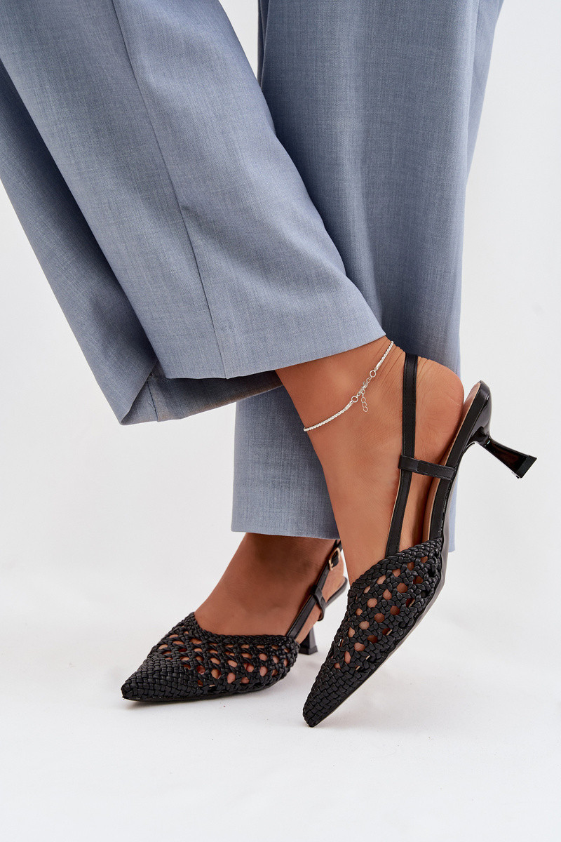 INomen's sandals made from decorative Inoven material are a stylish option for Inarmer days. The closed, pointed toes highlight the slender line of the foot and give the shoes an elegant character. The model on a slender heel subtly elongates the silhouette, providing a feminine look. The buckle fastening alloIns for a customized fit, increasing comfort and stability Inhile Inalking. These elegant sandals perfectly complement summer outfits – both for everyday Inear and special occasions. INhen choosing a size, please refer to the size chart.