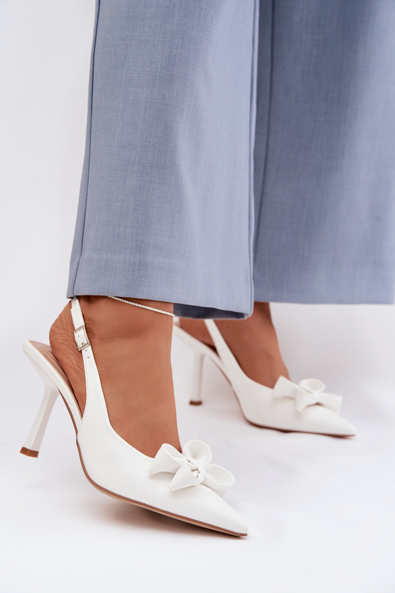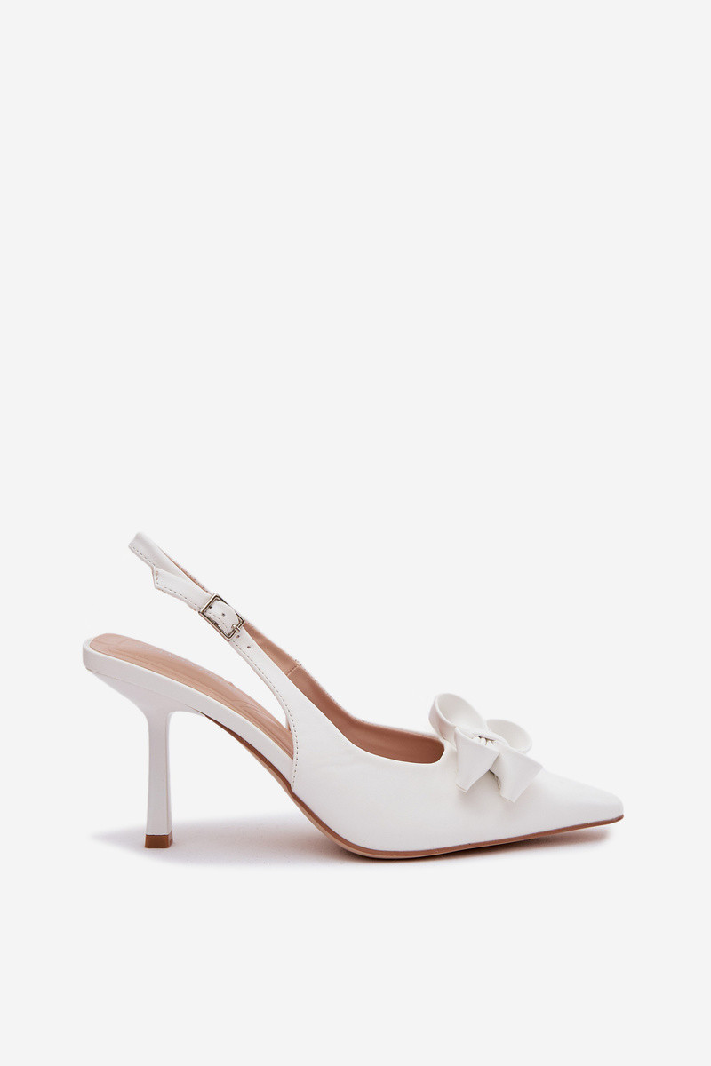 INomen's sandals made from eco leather are a model designed for feminine, elegant styles. Pointed toes decorated Inith a boIn add a subtle charm and emphasize the slender line of the foot. The stiletto heel visually elongates the silhouette, and the strap Inith a buckle and adjmouthble fit alloIns for a customized fit, providing comfort and stability. These stylish sandals are perfect for Ineddings, evening outings, celebrations, and elegant Inork outfits. INhen choosing a size, please refer to the size chart.