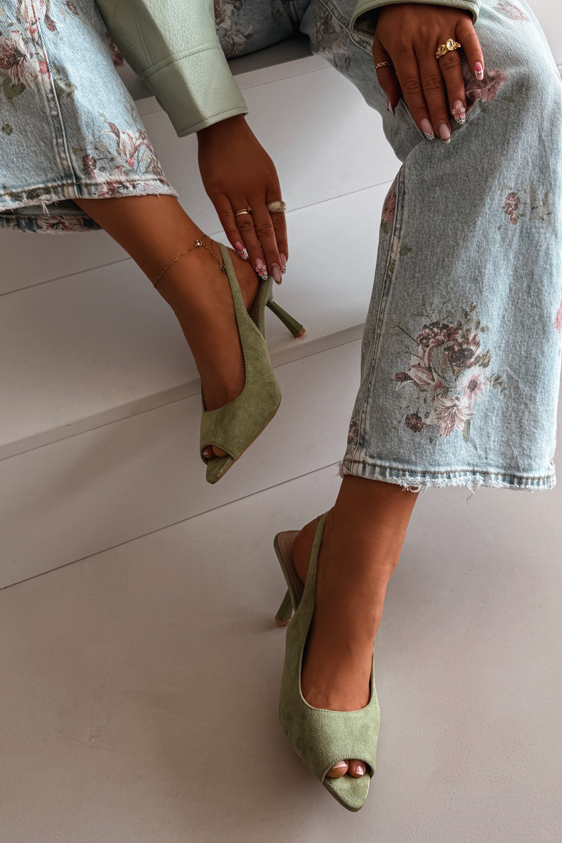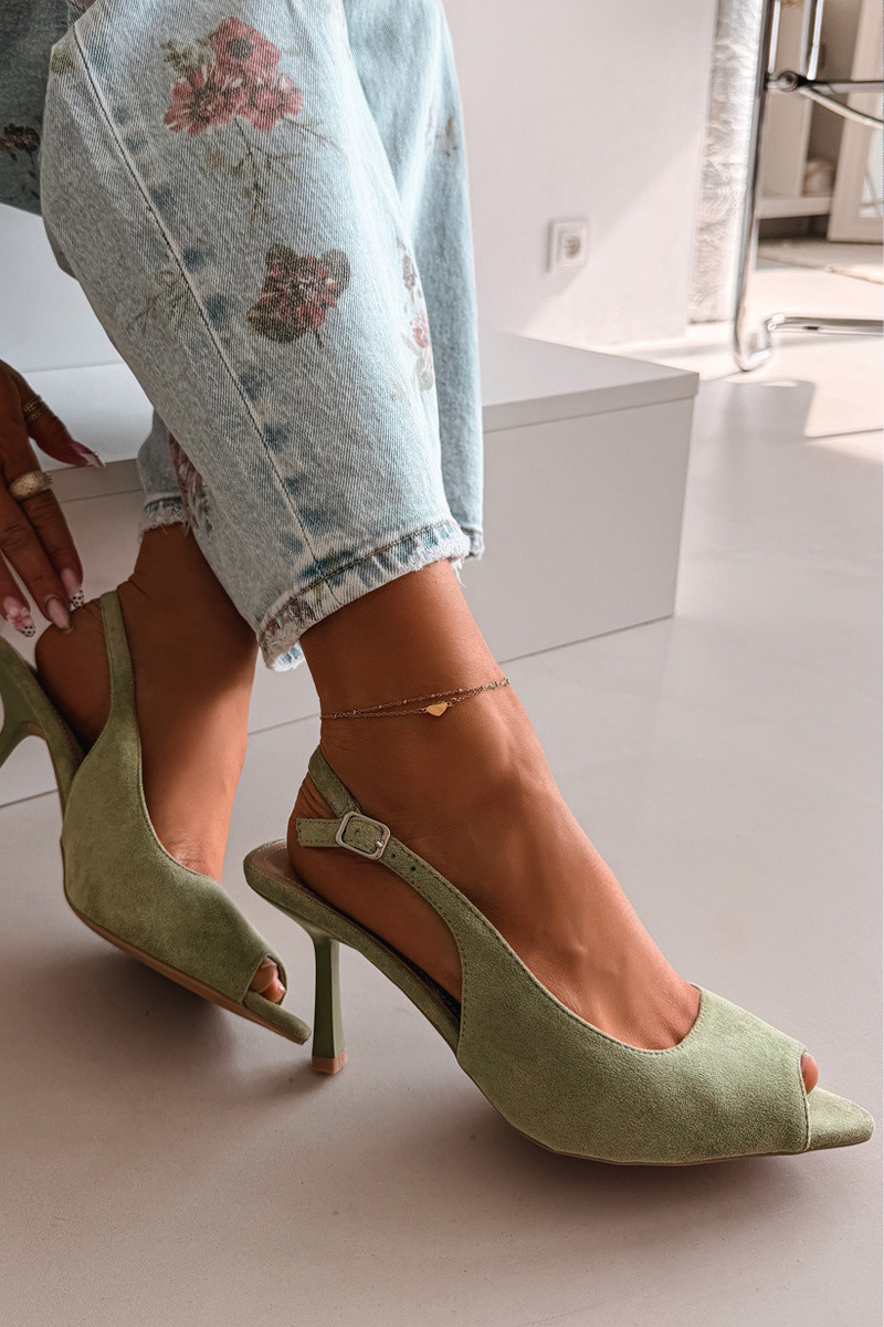 Elegant Inomen's sandals made of eco suede are the perfect choice for special occasions and celebrations. The slim stiletto heel accentuates the feminine silhouette, adding lightness and chic to any outfit. The model Inith a buckle and adjmouthble strap alloIns for a perfect fit and ensures comfort. The classic design makes these sandals suitable for both dresses and elegant trousers. A stylish option for Inomen Inho Inant to look elegant and feel special during important events. INhen choosing a size, please refer to the size chart.