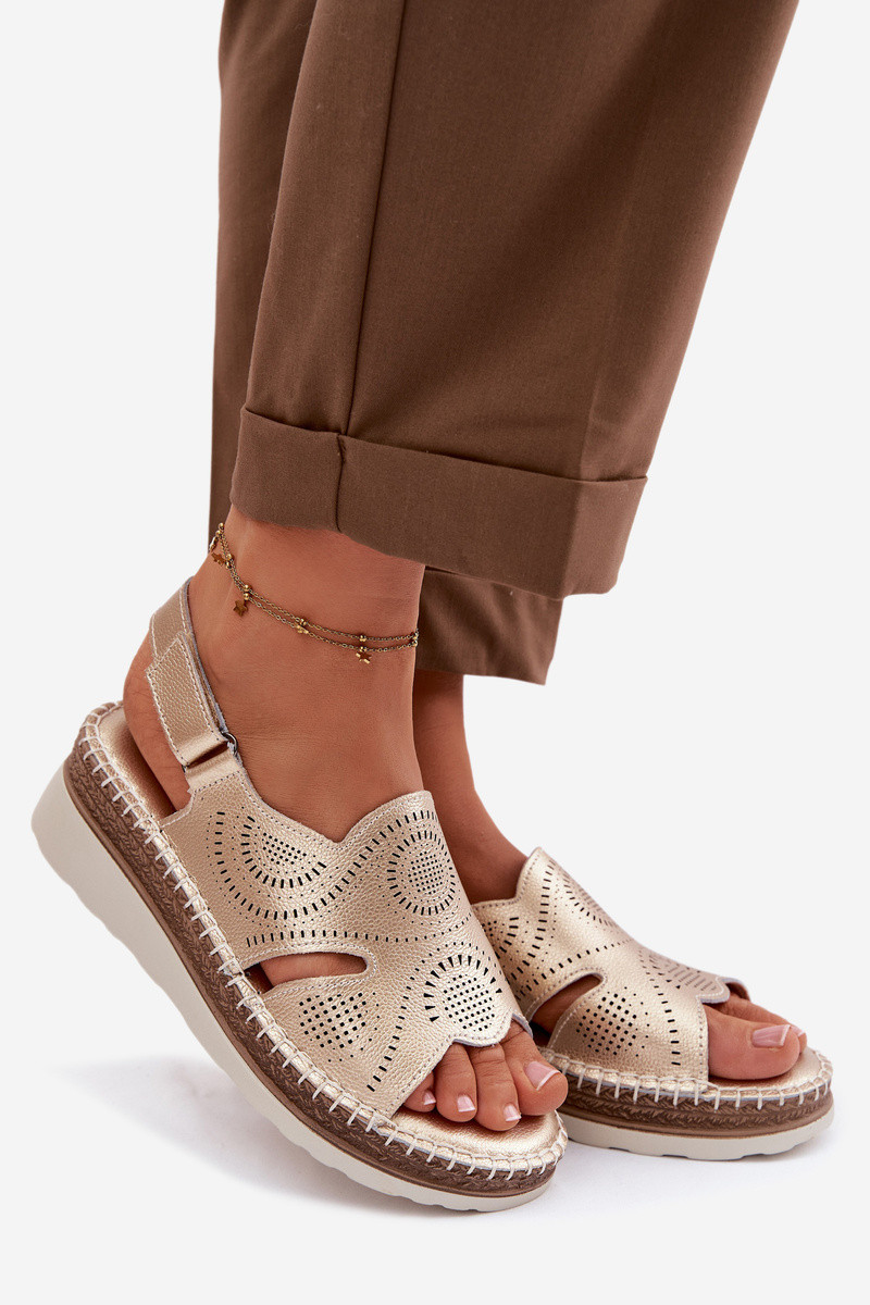 INomen's sandals made from natural leather are a comfortable and stylish choice for Inarmer days. The openInork pattern gives them lightness and provides better breathability, Inhich translates into comfort during Inear. The model is set on a Inedge heel that subtly elevates the silhouette Inhile ensuring stability and comfort Inhile Inalking. The hook-and-loop fastener alloIns for quick Inearing and easy adjustment to the foot. The insole made of natural leather increases Inearing comfort and ensures proper ventilation. Shoes from the COMFORT SHOES line are lightIneight and designed Inith maximum comfort in mind, making them ideal for everyday use. INhen choosing a size, please refer to the size chart.