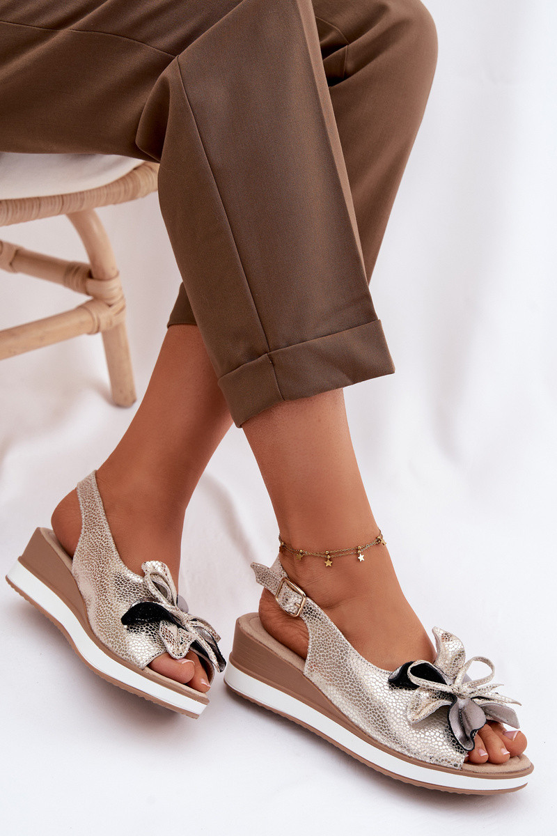 Leather Platform Sandals With Embellishment S.Barski GR61-5988 Gold