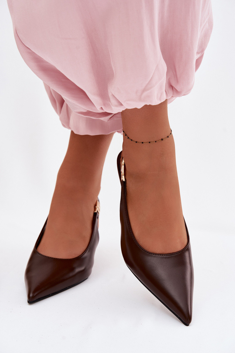 Women's Leather Look Sandals With Heel Chocolate Jelissey