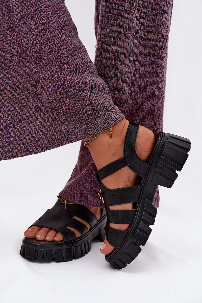 Leather Women's Platform Sandals With Dragonfly Vinceza 79627 Black