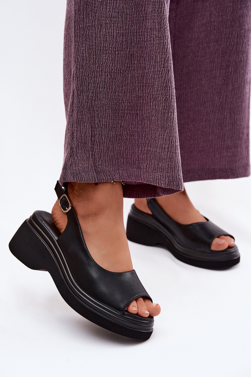 Leather platform sandals Vinceza 66936, black color