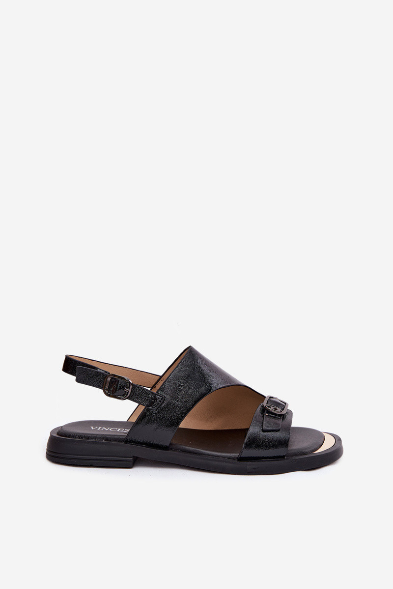 Leather Women's Flat Heel Sandals Vinceza 86434 Black