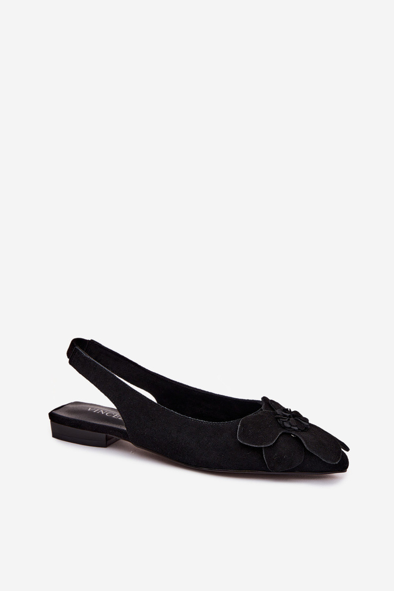 Leather Suede Flat Sandals with Decorative Flower Vinceza 66951 Black
