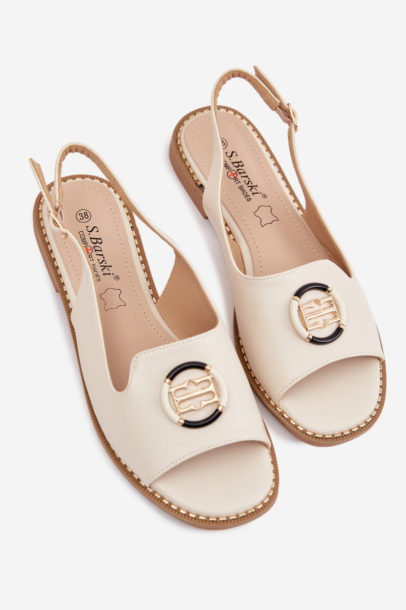 Women's Flat-Soled Sandals With Embellishment S.Barski KV61-6037 Cream