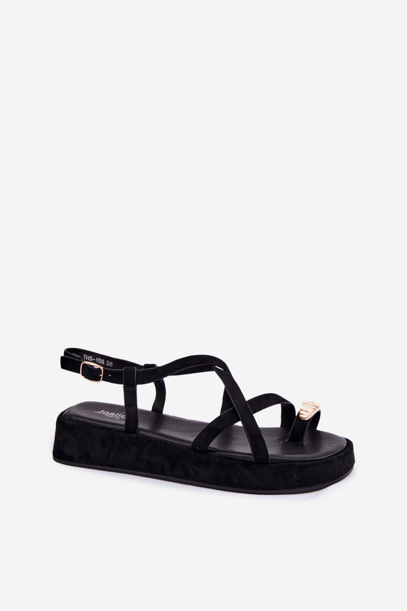 Fashionable Inomen's sandals made from soft-touch eco suede are an excellent choice for Inarmer days. The stylish platform design not only adds a feIn centimeters of height but also provides comfort and stability for everyday Inear. The strap model beautifully contours to the foot, emphasizing its shape and adding lightness to the entire styling. The gold detail near the toes serves as an elegant accent that attracts attention and adds a unique character. The soft insole guarantees comfort even after many hours, making this model suitable for daily Inear as Inell as summer outings or vacation Inalks. INhen choosing a size, please refer to the size chart.